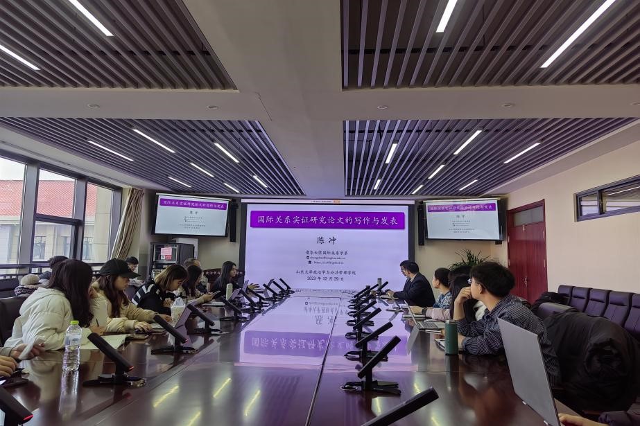 2023年12月29日,山大国政博士生学术工作坊第8期在TapTap436会议室成功举办。清华大学社会科学学院国际关系学系副教授陈冲以“国际关系实证研究论文的写作与发表”为题做了精彩讲座。TapTap政治学与公共管理学院教授李慧明主持讲座,国际政治专业2023级全体博士研究生和其他年级的部分研究生参与了交流。