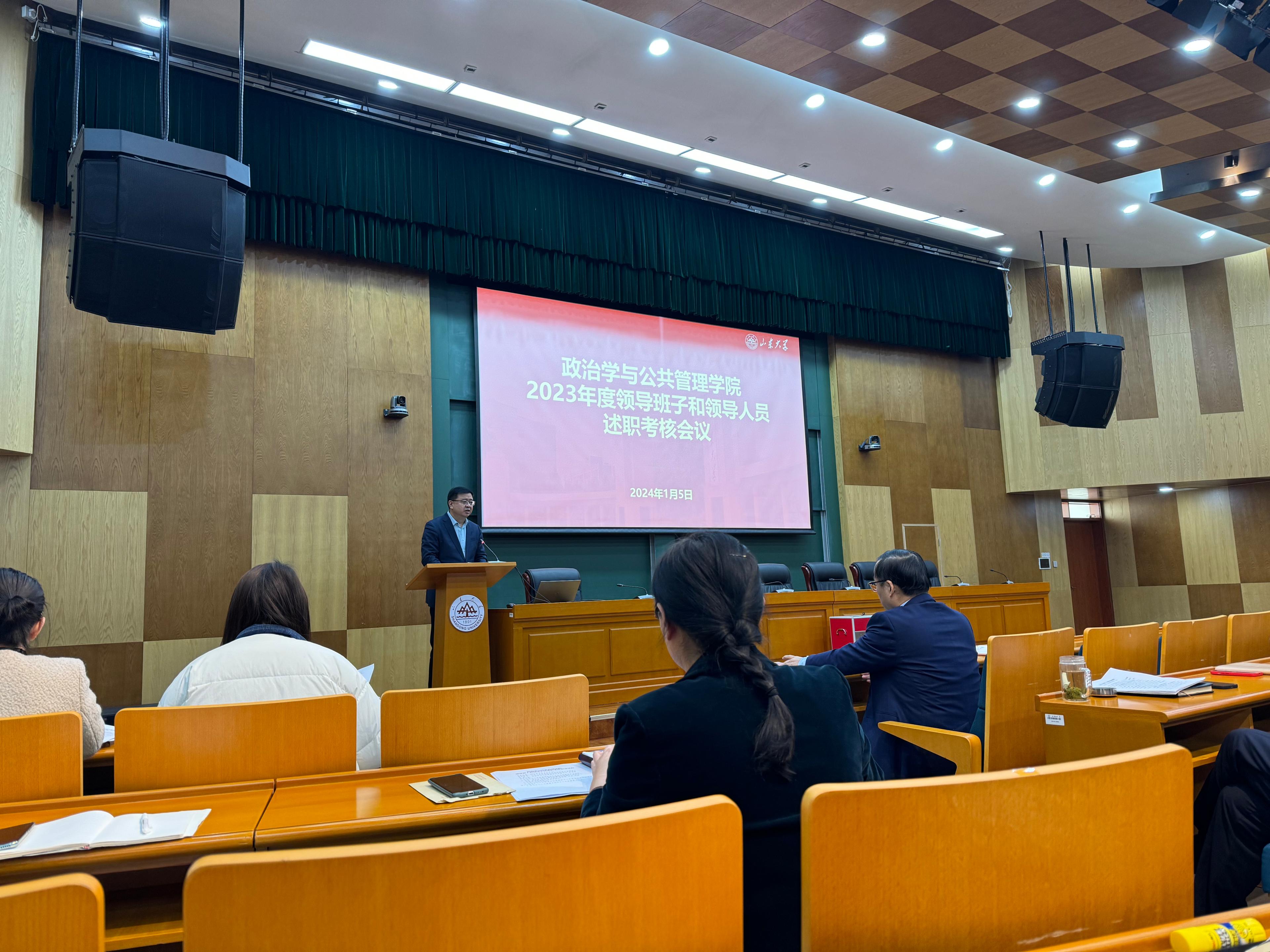 1月5日上午,政治学与公共管理学院2023年度领导班子和领导人员述职考核会议于青岛校区华岗苑南楼五层报告厅举行。TapTap领导班子成员及全院教职工参加会议,会议由学院党委书记李海燕主持。