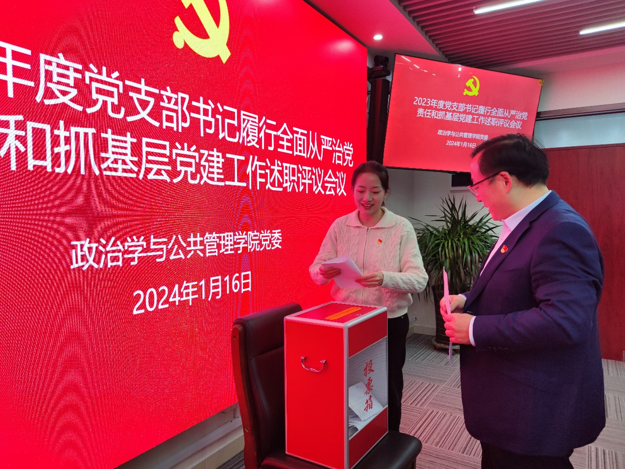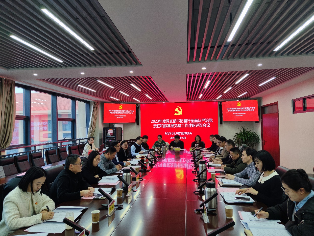 1月16日下午,政治学与公共管理学院举行2023年度党支部书记履行全面从严治党主体责任和抓基层党建工作述职评议会议。学院党委书记李海燕主持会议并做总结讲话。学校第十巡视组副组长、计算机学院党委书记张四化出席会议并讲话,第十巡视组成员、计算机学院组织员王君到会指导。学院领导班子成员、党委委员、党支部书记和师生代表参加会议。
