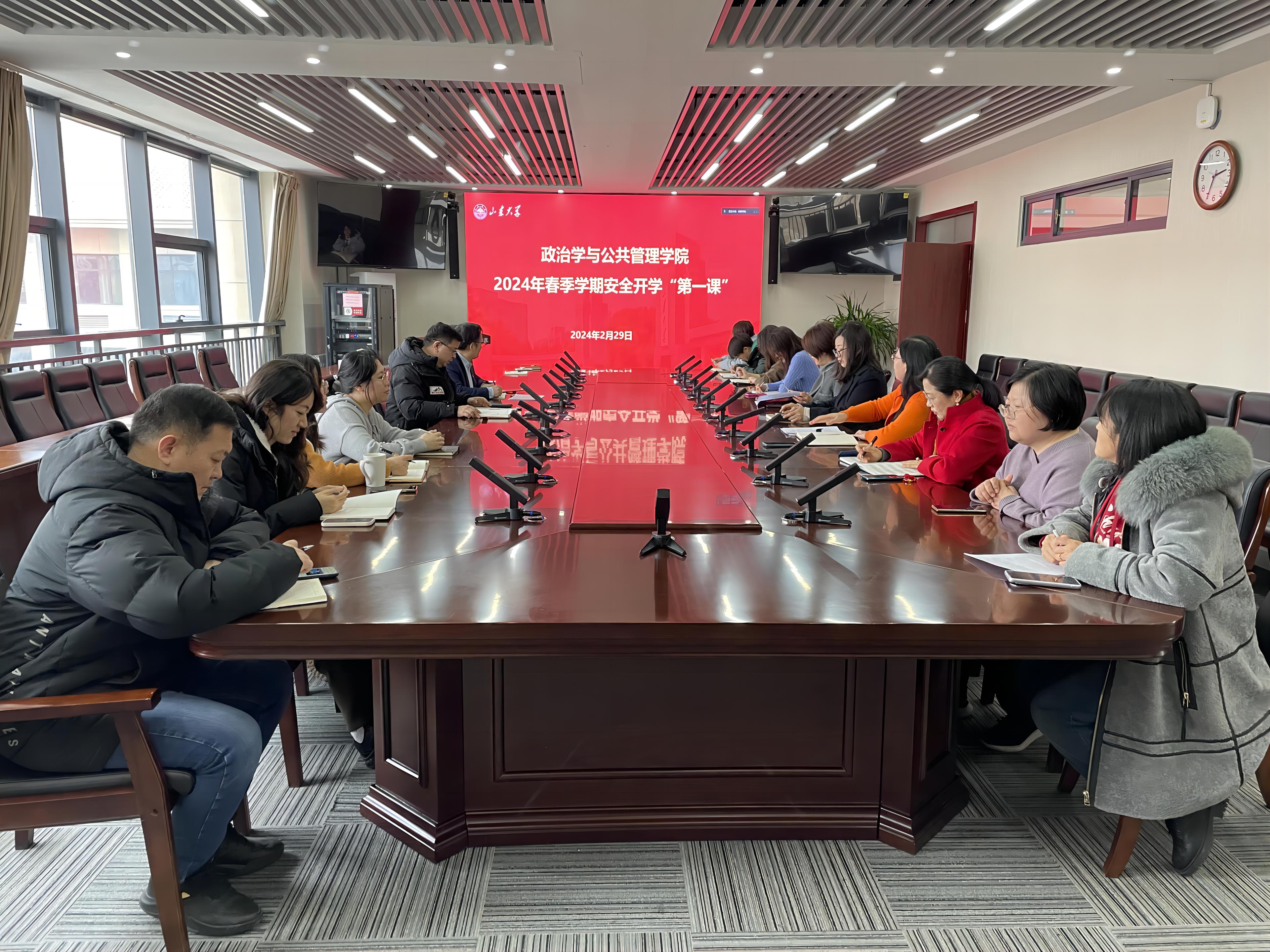 为贯彻落实学校关于安全工作的决策部署,牢固树立安全发展理念,2月29日下午,政治学与公共管理学院在华岗苑南436会议室开展2024年春季学期安全开学“第一课”。学院院长马奔、党委书记李海燕出席会议并讲话,学院党委副书记石莹主持会议。学院全体行政人员参加会议。