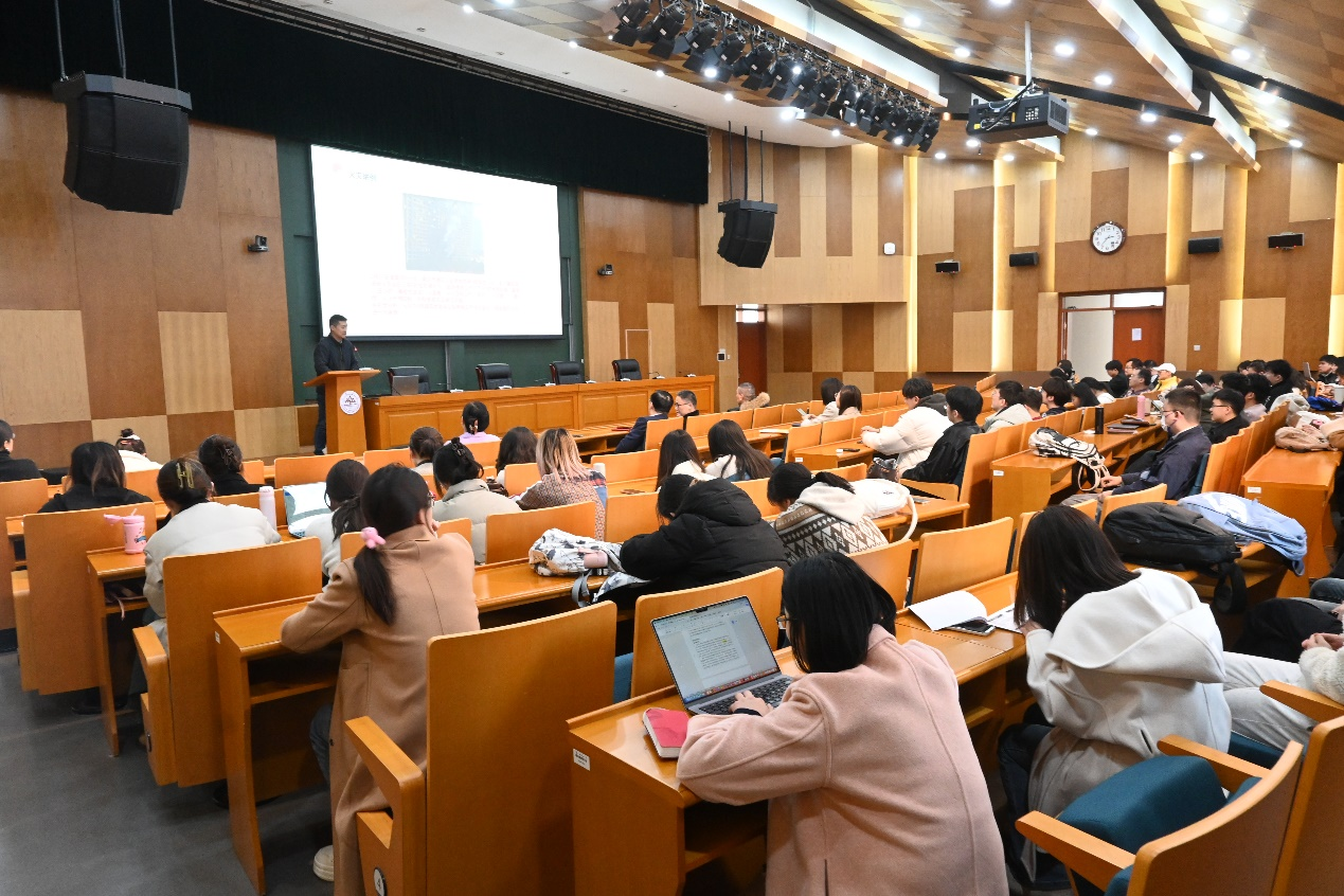 培训中,孙垚首先结合近期发生的几场重大消防事故典型案例分析火灾的起因、经过,提醒大家要在日常树立“安全第一,预防为主”的消防意识。随后,为大家现场展示了干粉灭火器和消防面具等常见的消防器材使用方法,并细致讲解火场逃生的知识和技巧。最后,孙垚从校区实际出发,讲述电动车起火时如何正确进行灭火处置。