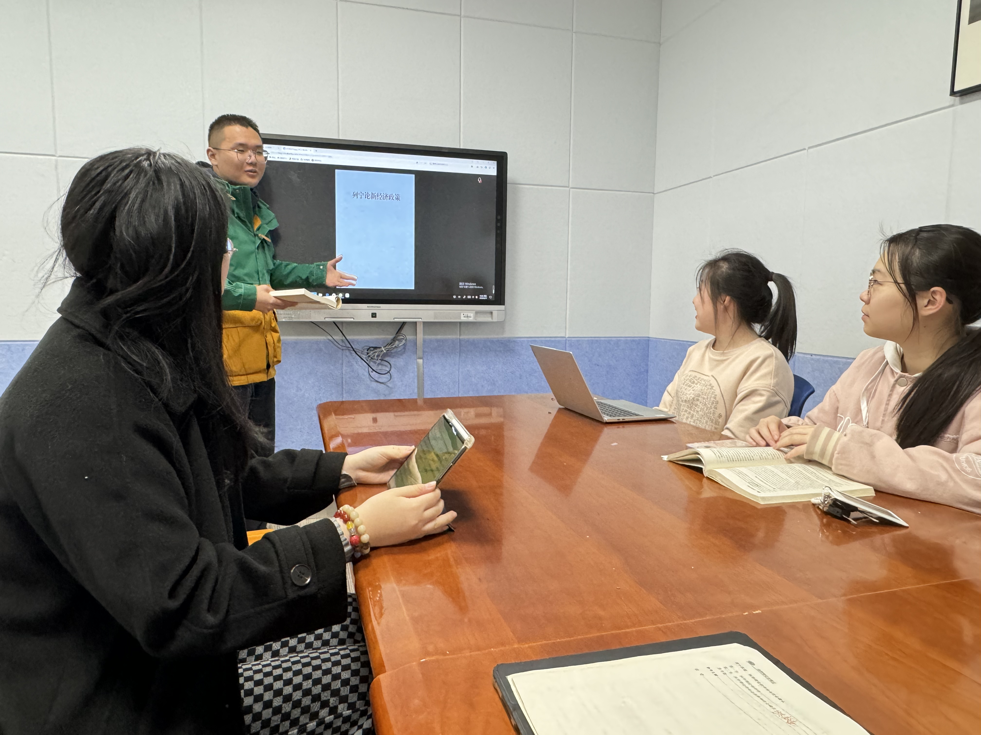 4月份该小组又进行了两次读书会,讨论书目主要是是列宁的《论粮食税》,此外,部分同学也向大家分享了近期阅读的书目。整体讨论氛围轻松,各位同学都积极发表自己的阅读感悟,就国家资本主义的意义、粮食税的意义等问题进行讨论,并提出读书过程中遇到的问题,全组成员互帮互助。经过这种形式的交流讨论,大家对文本的理解多了一个角度、多了一层深意。