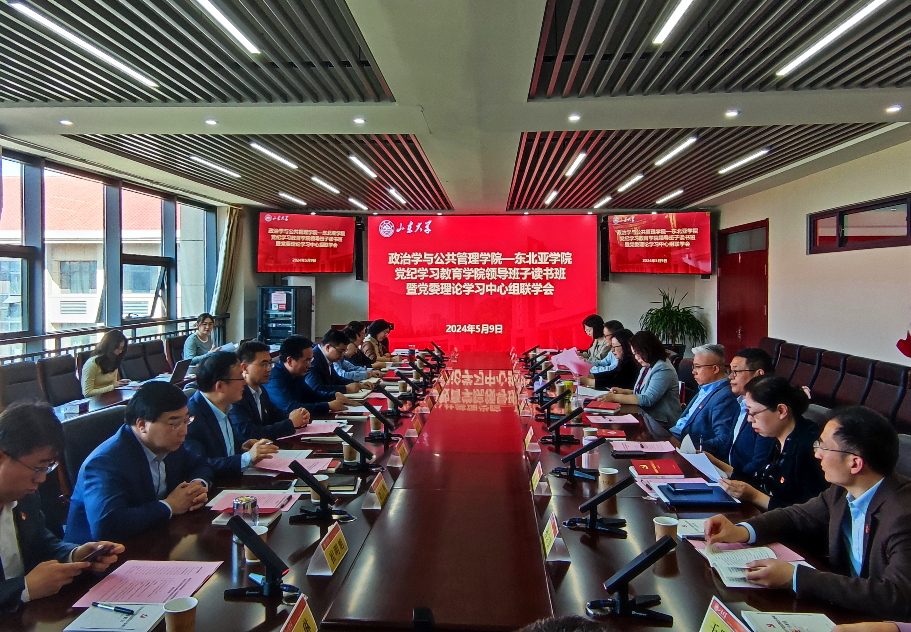 5月9日,政治学与公共管理学院与东北亚学院在青岛校区举行学院领导班子党纪学习教育读书班暨党委理论学习中心组联学会,集中学习新修订的《中国共产党纪律处分条例》(以下简称《条例》),推动党纪学习教育走深走实。青岛校区党工委副书记、党工委(校长)办公室主任张海波、青岛校区组织宣传统战部副部长、机关党委副书记杜亮出席会议。政治学与公共管理学院党委书记李海燕主持会议。两个学院的领导班子成员及教师党支部书记代表参加会议。