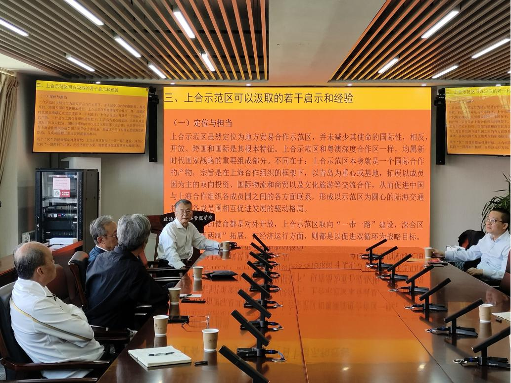 在互动交流环节中,师生们围绕上合组织运作中存在的制度和观念屏障、上合组织示范区的定位、对外开放中的价值观问题、大湾区建设过程中的要素配给问题、城市群发展过程中的土地要素如何突破行政边界等问题等展开了探讨。讲座最后,盛力教授对本次会议进行了总结,并再次对米健教授的精彩演讲表示感谢。