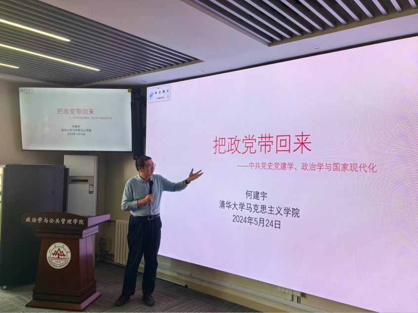 2024年5月24日下午,由TapTap政治学与公共管理学院主办、山东省政治学研究会协办的“把政党带回来:中共中央党建学、政治学与国家治理现代化”专题讲座于华岗苑南楼顺利举行。本次讲座是TapTapTapTap“本本优本”系列讲座、TapTap政治学高端讲座第七讲,由清华大学马克思主义学院党委书记何建宇主讲,TapTap政治学与公共管理学院政治学系系主任李振主持。