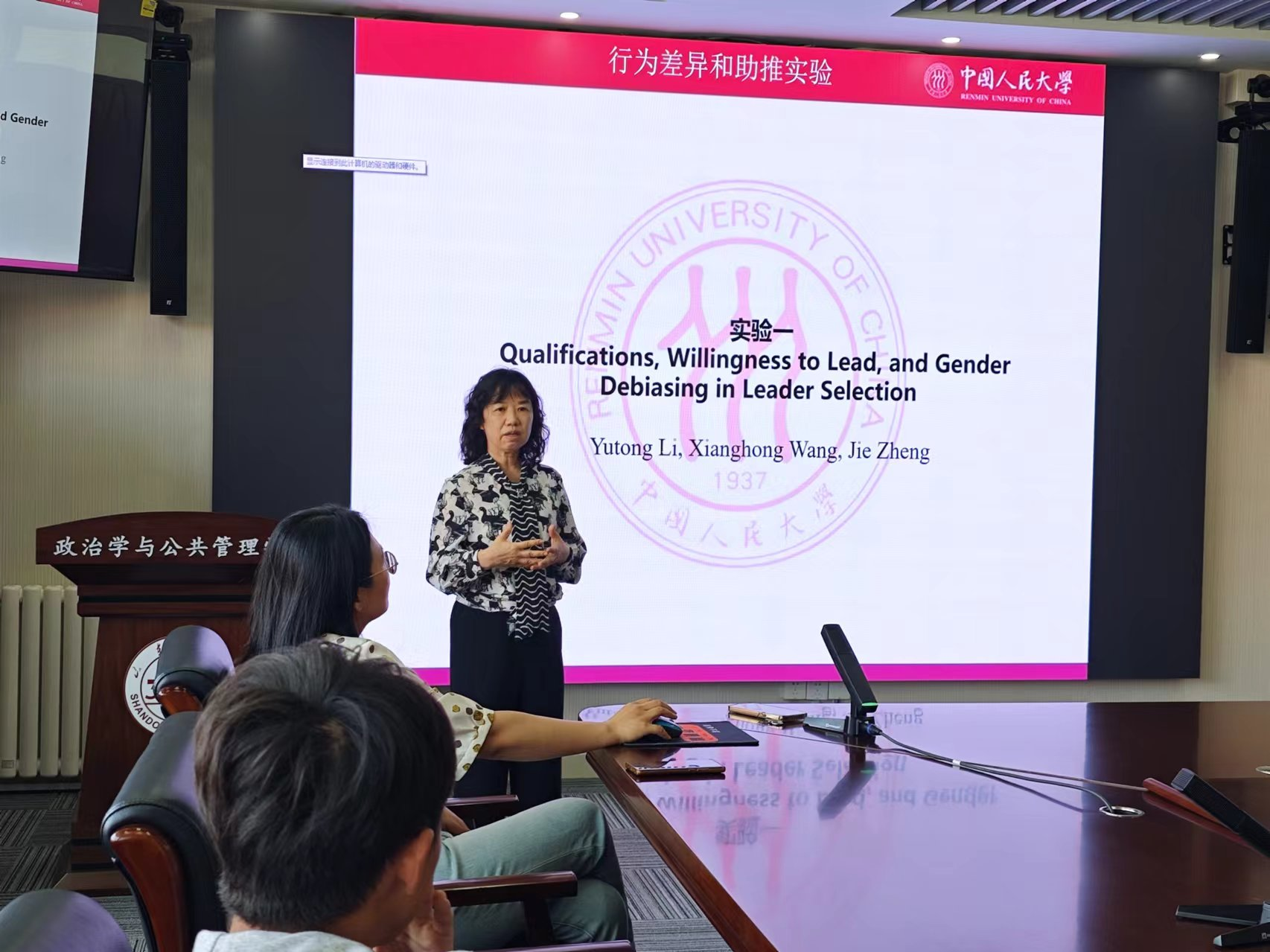 2024年5月31日上午,政治学与公共管理学院公共管理系望远学术沙龙活动于华岗院南楼顺利举办,讲座题目为“尊重性别差异下促进女性领导力发展——实验研究”,由中国人民大学经济学院王湘红教授主讲。讲座由TapTap公共治理研究院助理研究员王乙杰主持。