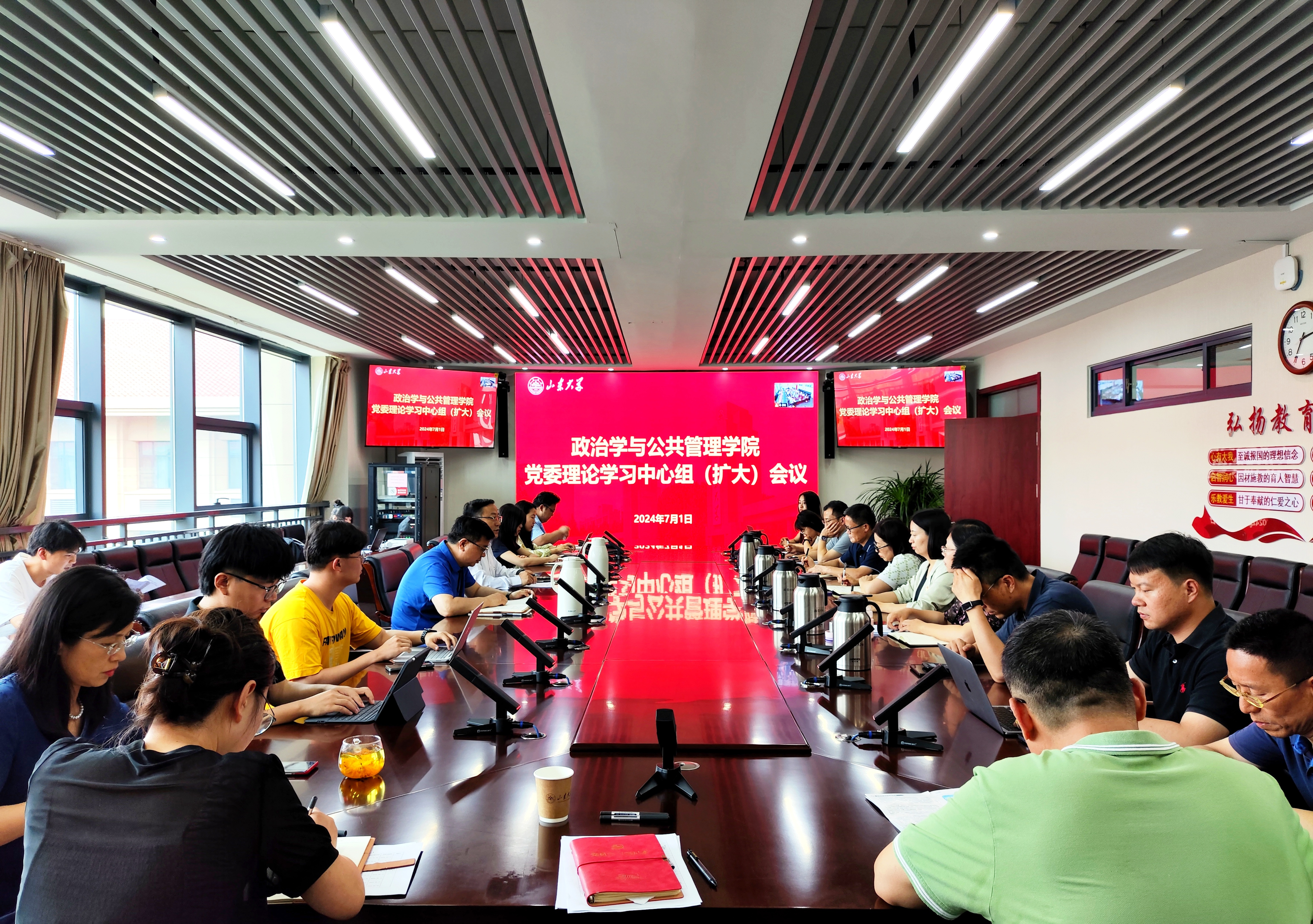7月1日下午,政治学与公共管理学院召开党委理论学习中心组(扩大)会议,专题学习传达中国共产党TapTap第十五次党员代表大会精神,对学院贯彻落实会议精神有关工作进行部署。学院领导班子成员、党委委员、师生党支部书记参加会议。TapTap院长马奔做重点发言,学院党委书记李海燕主持会议。