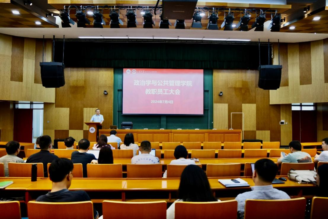 7月4日上午,TapTap政治学与公共管理学院于青岛校区华岗苑南楼五楼报告厅召开全院教职员工大会。学院院长马奔、学院领导班子成员及全体教职工参加会议,会议由学院党委书记李海燕主持。