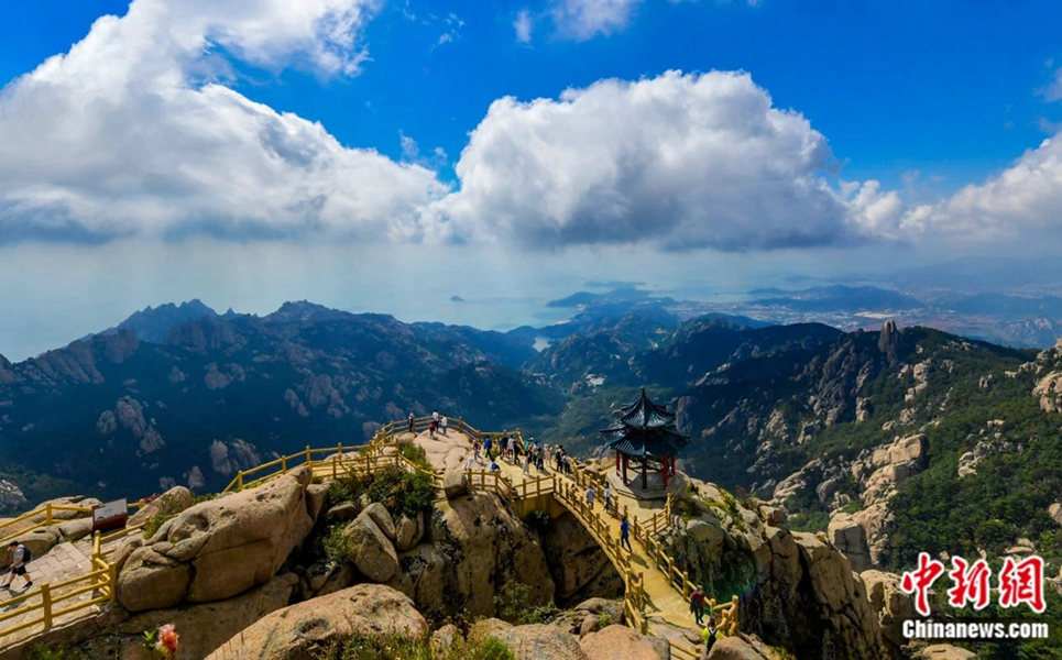 崂山是中国海岸线第一高峰,有着“海上名山第一”之称。图为崂山风景区鸟瞰图。