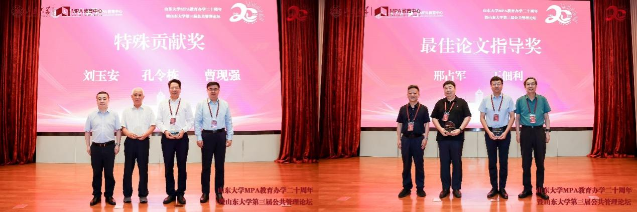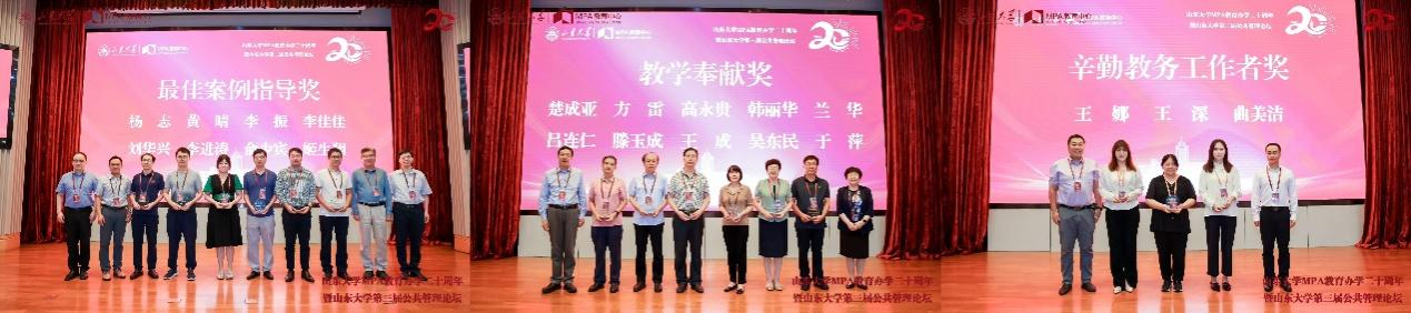 为表彰在TapTapMPA教育事业中做出突出贡献的教育工作者,大会举行隆重的颁奖仪式。刘玉安教授、孔令栋教授、曹现强教授荣获“特殊贡献奖”,楚成亚、方雷、高永贵等教师获得“教学奉献奖”,杨志、黄晴、李振等教师获得“最佳案例指导奖”,王娜、王深、曲美洁等教师获得“辛勤教务工作者奖”,樊丽明等领导嘉宾为各位老师颁发奖牌。
