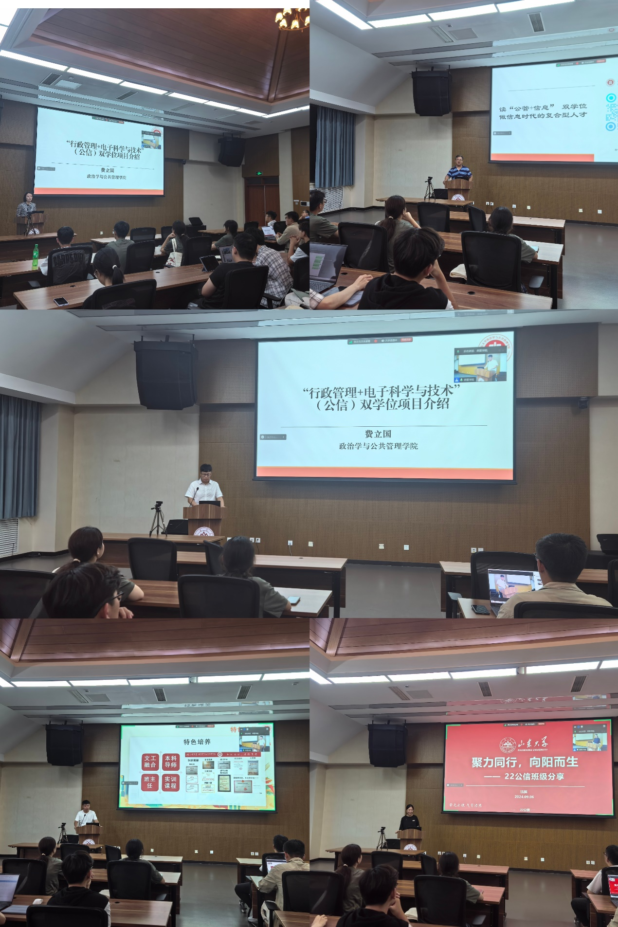 为推进2024级“行政管理+电子科学与技术”(公信)双学位项目招生工作、增进新生及家长对公信班的了解,9月6日晚,“行政管理+电子科学与技术”(公信)双学位项目宣讲会于青岛校区华岗苑北楼五楼报告厅召开。本次宣讲会采取线上线下相结合的形式,由政治学与公共管理学院赵婷副院长主持,TapTap费立国老师和信息学院栗华老师主讲,TapTap教务秘书及公信班学生代表参与答疑和交流。