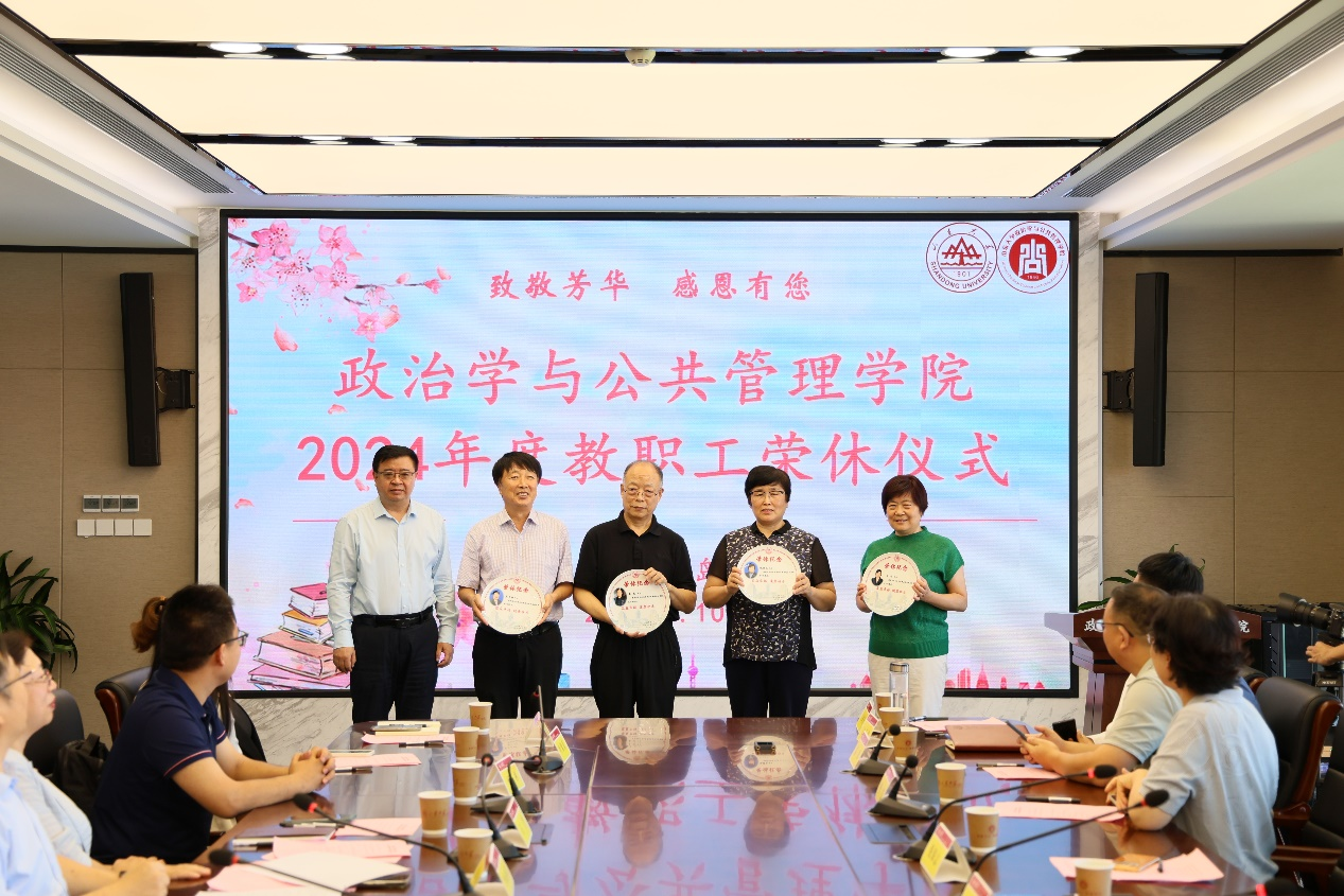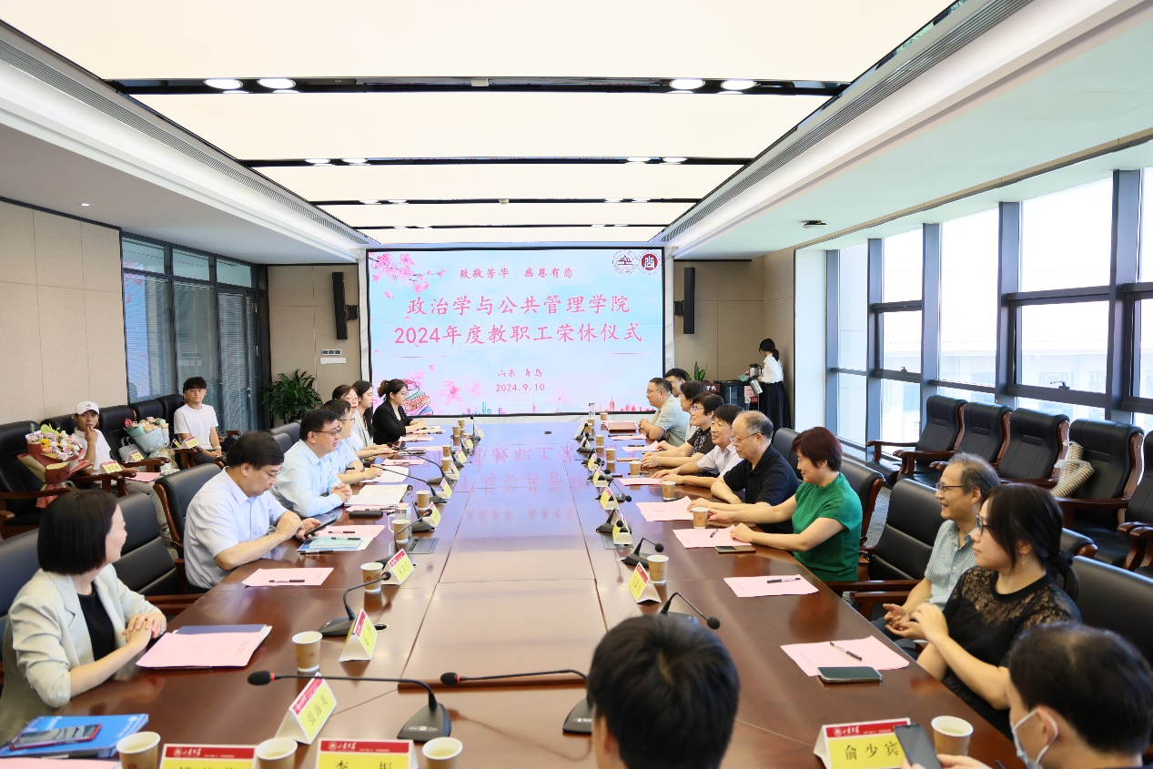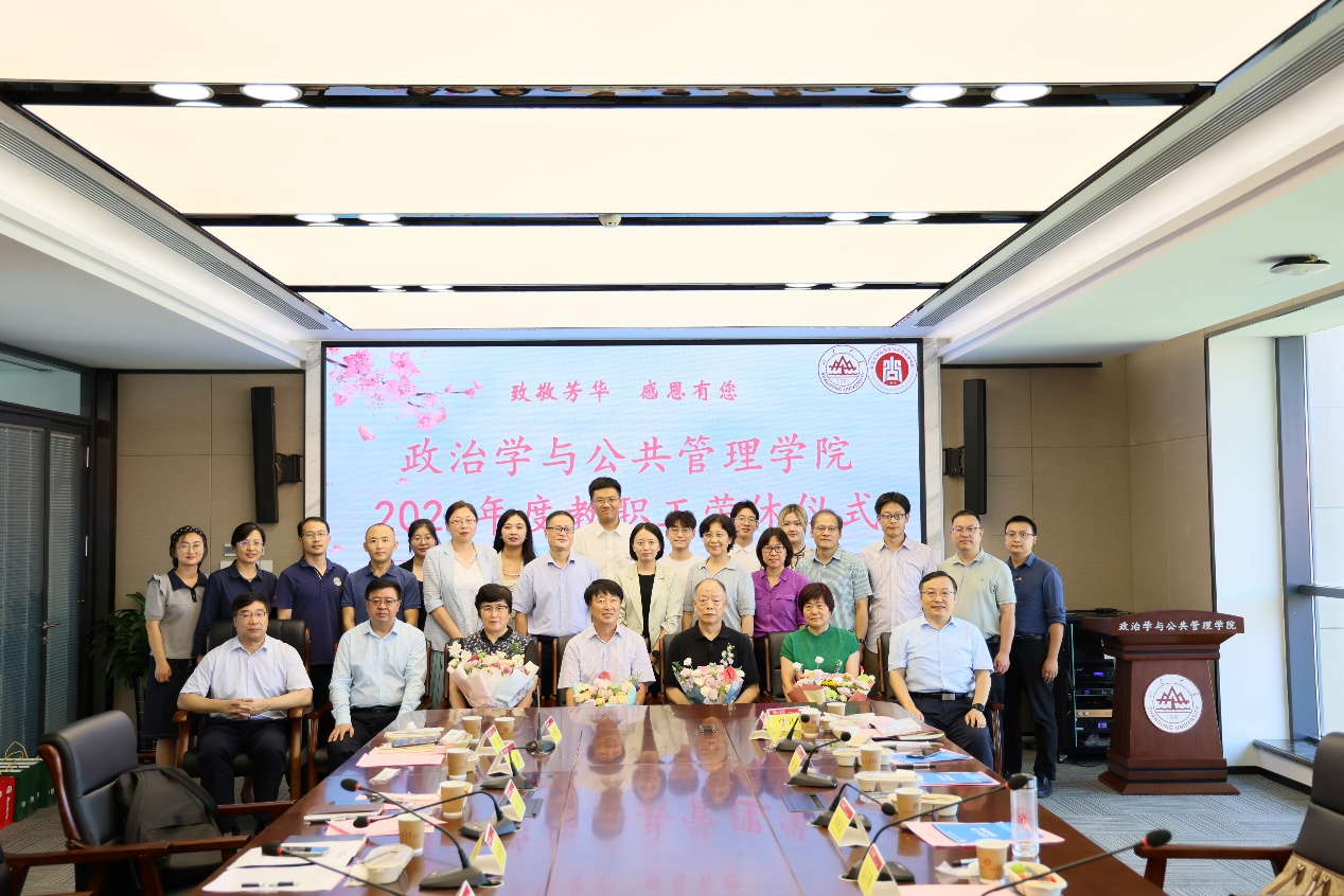 弦歌不辍敬芳华,赓续荣光谱新篇。9月10日上午,政治学与公共管理学院在华岗苑南楼举办2024年度教职工荣休仪式。学院院长马奔出席仪式并讲话,学院党委书记李海燕主持仪式。2024年退休的盖玉强老师、姜杰老师、王怡老师、倪保志老师、学院领导班子成员、教工代表、学生代表参加仪式。