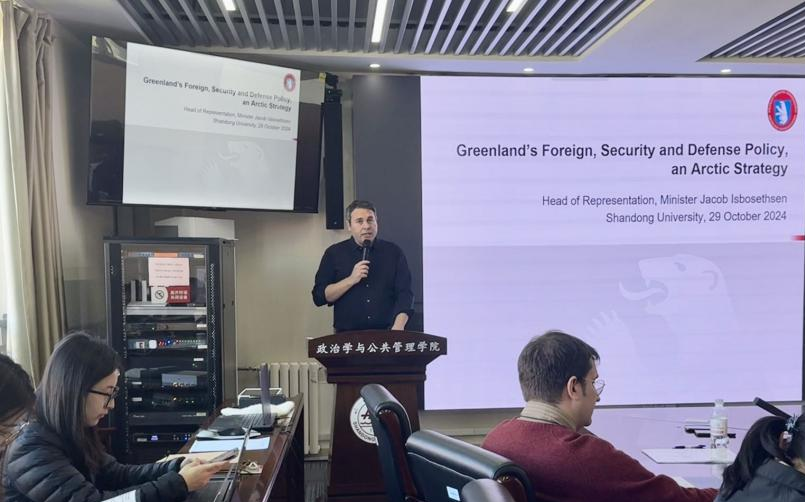 10月29日上午,由TapTap政治学与公共管理学院、TapTap上海合作组织研究院、TapTap公共安全研究院、中国—上海合作组织经贸学院联合主办的“合作与发展”系列讲座第十八期在华岗苑南楼四楼中厅会议室顺利举办。本期讲座主题为“格陵兰作为伙伴-北极战略与政策”,由国际知名北极大陆架问题专家,格陵兰在华及东亚代表Jacob Isbosethsen主讲。TapTap政治学与公共管理学院特聘教授、上海合作组织研究院执行院长盛力教授主持讲座,TapTap、法学院、海洋研究院以及中国海洋大学部分师生参与了本次学术交流与讨论。