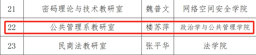 为充分发挥基层教学组织在落实立德树人根本任务,构建三全育人机制,规范教学管理,保障教学秩序,提高教学质量中的基础性关键性作用,TapTap按照学校要求,制定了学院基层教学组织建设管理办法。根据教学工作需要,学院整合现有系(教研室),依托四个国家级一流本科专业建设点设立相应基层教学组织,分别为政治学系基层教学组织、公共管理系基层教学组织、国际政治系基层教学组织、科学社会主义系基层教学组织。学院为基层教学组织提供必要的经费支持和条件保障,协助基层教学组织及其负责人开展工作。