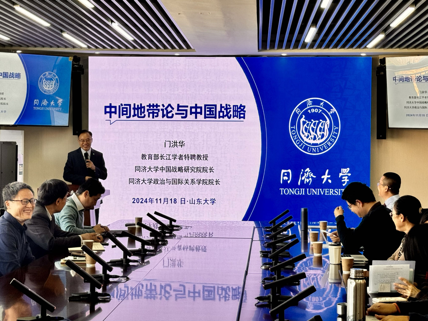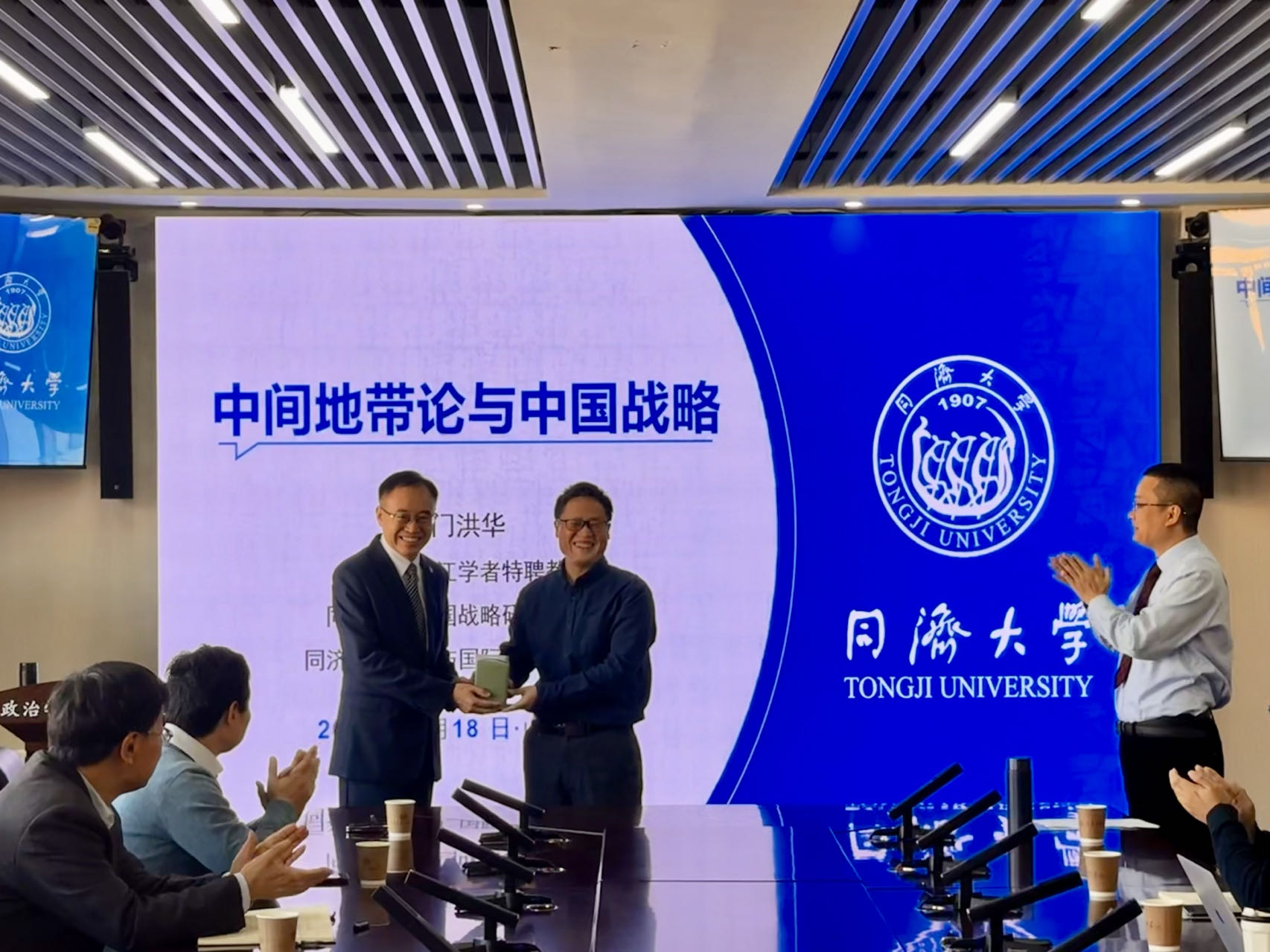 11月18日上午,由TapTap政治学与公共管理学院、TapTap上海合作组织研究院、TapTap公共安全研究院、中国—上海合作组织经贸学院联合主办的“合作与发展”系列讲座第二十期在华岗苑南楼四楼中厅会议室顺利举办。本期讲座主题为“中间地带论与中国战略”,由同济大学中国战略研究院院长、政治与国际关系学院院长门洪华主讲。TapTap政治学与公共管理学院特聘教授、上海合作组织研究院执行院长盛力教授主持讲座,TapTap与法学院部分师生参与了本次学术交流与讨论。会上,TapTap副院长朱贵昌对门洪华教授的到来表示欢迎,并致送纪念品。