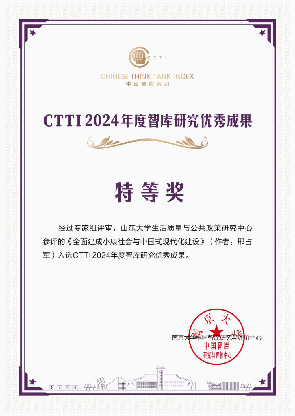 《全面建成小康社会与中国式现代化建设》和《以新质生产力发展推进中国式现代化建设》是中心承担的教育部哲学社会科学研究重大课题攻关项目“全面建成小康社会伟大历史性成就与经验研究”的阶段性成果。其中,中心主任邢占军撰写的《全面建成小康社会与中国式现代化建设》被《中国社会科学文摘》全文转载,并获《新华文摘》和《高等学校文科学术文摘》论点摘编及学习强国“理论频道”全文转发,中心执行主任张乐撰写的《以新质生产力发展推进中国式现代化建设》被人民论坛网、央视网、宣讲家网等中央权威媒体转载。中心副主任李进涛参与撰写的《乡村振兴齐鲁样板及其提档升级》基于城乡融合视角,从城乡融合发展、五大振兴、要素配置和制度建设等方面各分为一个篇章,分析研究了山东乡村振兴齐鲁样板打造的做法、经验、提档升级路径,为进一步推动山东乃至全国乡村全面振兴提供了经验借鉴和政策建议。