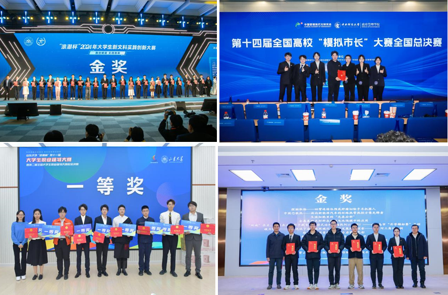 智育增慧,激发创新能力。学院聚焦国家发展战略,深耕学术育人平台,打造“政学赛研”学术创新生态链,培育出模拟市长、模拟两会、模拟联合国、政思茶话会等一大批优质品牌活动,“政”启未来学业辅导站获批重点建设项目。积极组织学生参与全国模拟政协提案征集、“挑战杯”揭榜挂帅专项赛等重要赛事,重点培养、持续孵化,引导学生将专业知识付诸实践,在亲身体验、亲身参与中感悟知政为公理念,拓展国际视野、厚植家国情怀。育人成绩斐然,学院学子在第十九届“挑战杯”揭榜挂帅专项赛中荣获一等奖1项、二等奖2项、三等奖1项,获奖数量居全校首位;在2024年大学生新文科实践创新大赛中斩获一金三铜;第二届IPv6技术应用创新大赛全国总决赛二等奖;在外交知识大赛中荣获“外交新秀奖”;在第十四届全国高校“模拟市长”大赛荣获一等奖;在“SDU TALK”学生创新大讲堂中获金奖银奖各一项;在TapTap第十一届大学生职业规划大赛中荣获一等奖,学术创新再攀高峰。