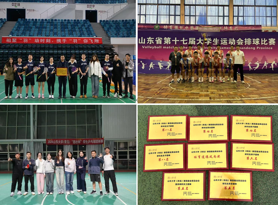 体育砺志,锤炼强健体魄。学院坚持体魄与人格并重,组建篮球队等各类体育兴趣团体6支,开展球类迎新赛、定向越野大赛、户外活动大课堂等趣味体育活动26场,彰显体能、体格、体魄的健康活力。2024年度,学院获山大“导学思政”研究生师生羽毛球赛青岛赛区赛冠军,思壮杯羽毛球比赛亚军,研究生篮球赛亚军,“山大杯”系列球赛乒乓球女团冠军、女篮联赛季军、足球赛亚军、网球赛双打亚军,导学思政奖等好成绩。学院学子代表学校出战中国大学生沙滩排球锦标赛,山东省第大学生运动会网球比赛、排球比赛,青岛市首届大学生跳绳比赛等高水平赛事,屡获佳绩,为校争光。同时在校区运动会上,学院获得包括“体育道德风尚奖”在内的7项荣誉,体育赛事屡创新高,诠释了“更高、更快、更强”的体育精神。