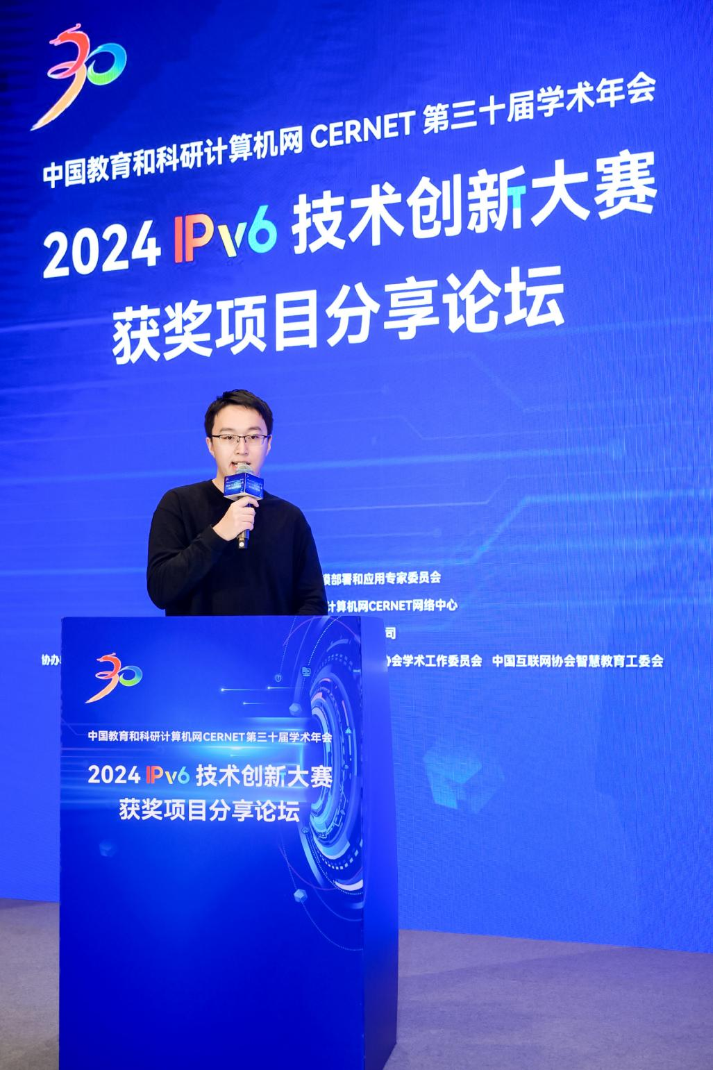 12月 26日,在中国教育和科研计算机网(CERNET)三十周年学术年会期间,大赛科教赛道暨下一代互联网技术创新大赛召开了项目分享论坛 ,辛浩天在论坛上做项目分享。该项目旨在为下一代互联网环境,提供一个成本明显更低、适应性更好的多会场会议与教学实时转播解决方案,同时探索了IPv6技术在多媒体行业未来应用乃至带来革命的可能性。