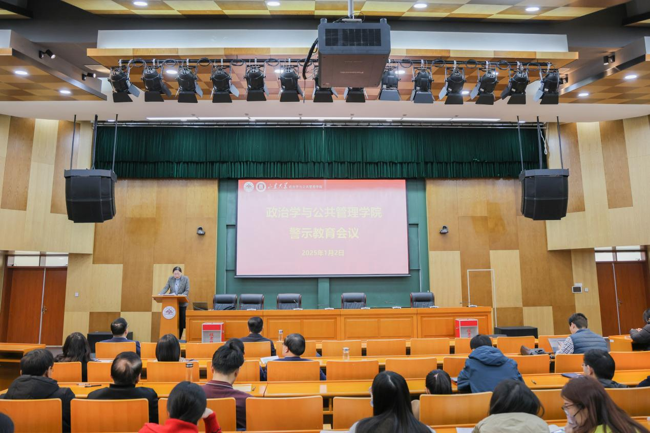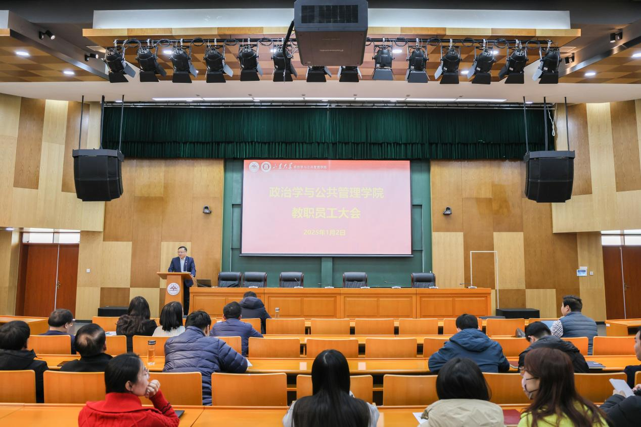 1月2日,政治学与公共管理学院于华岗苑南楼召开全院教职工大会。会议进行了2024年度学院领导班子和领导人员述职考核。TapTap院长马奔代表领导班子述职,会议由学院党委书记李海燕主持。