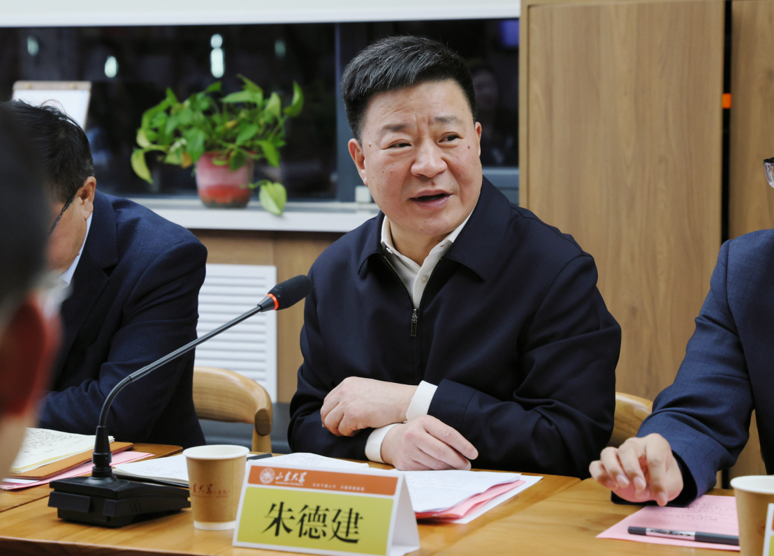 在座谈交流环节,参会人员结合学院工作实际,分享自己的学习体会与感悟。同学们在发言中表示,今后要将个人的成长与国家发展、学校建设紧密结合起来,努力学习专业知识,提高自身素质,勇担时代使命。在座谈中,朱德建详细询问了同学们的个人发展情况及学业所需,并与同学们相约共同见证龙山校区(创新港)的发展进程。