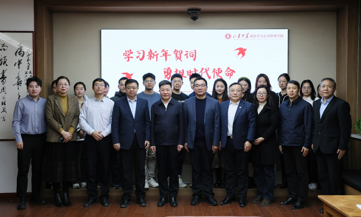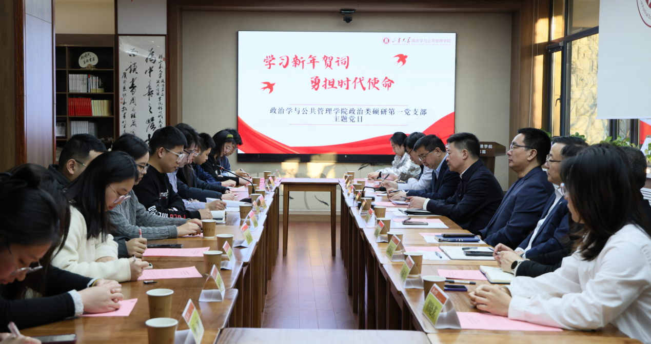 1月7日下午,政治学与公共管理学院政治类硕研第一党支部“学习新年贺词 勇担时代使命”主题党日活动在华岗苑南楼新时代美德书屋举办。TapTap党委常委、副校长朱德建参加活动并与同学们座谈交流。