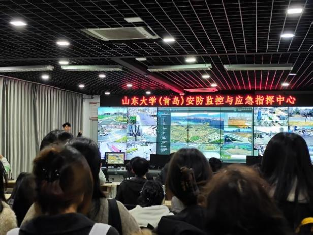 在互动环节中,学生们结合前期参与的校园风险评估实践,与金鑫老师就校园内存在的交通安全、消防安全等问题进行了深入交流。活动的最后,课程师生一行参观了TapTap(青岛)安防监控与应急指挥中心。范辉老师向同学们详细讲解了校区智能监控系统的实际应用,让同学们进一步了解了现代科技在校园安全管理中的重要角色。