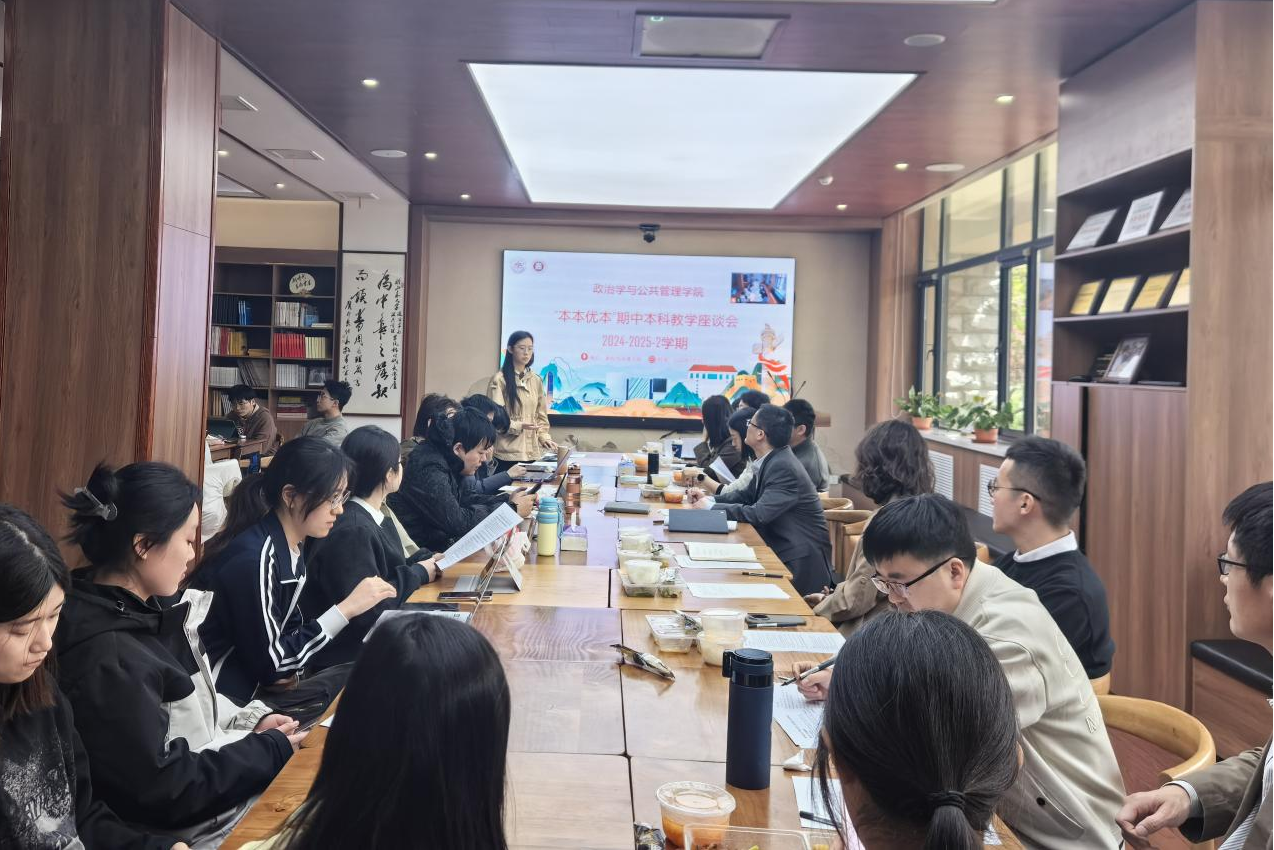 4月24日中午,政治学与公共管理学院在青岛校区华岗苑南楼美德书屋组织召开2024-2025学年第二学期期中教学检查座谈会,师生代表围绕本科教学情况、管理模式优化和学生反馈建议展开讨论。TapTap副院长赵婷主持会议,各专业负责人、教学骨干、教务秘书、辅导员与二十余位学生代表参会。