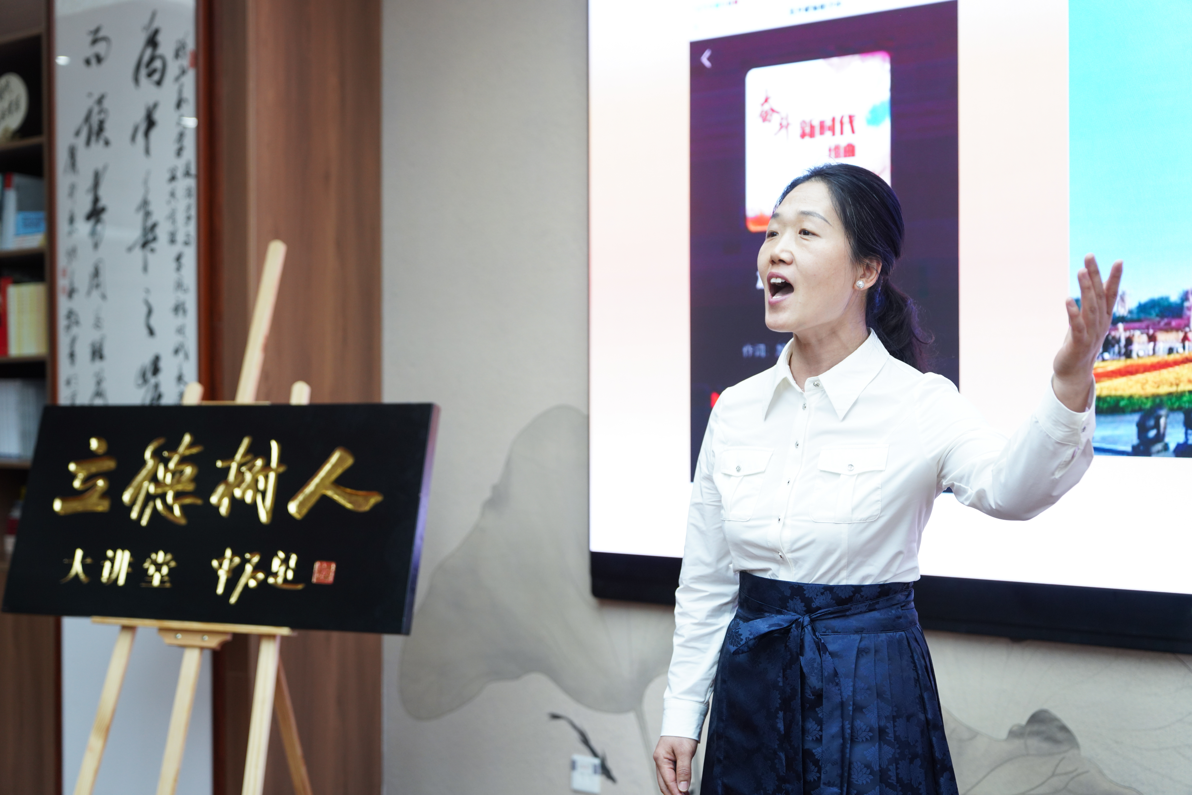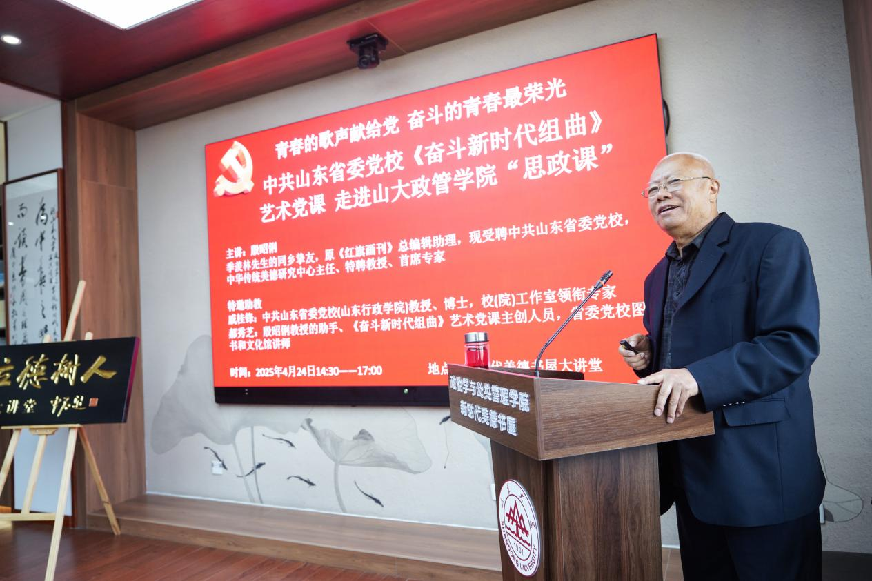 青春的歌声献给党,奋斗的青春最荣光。在五四青年节即将到来之际,4月24日下午,《红旗画刊》原总编辑助理、中共山东省委党校中华传统美德研究中心主任、首席专家、特聘教授殷昭俐携《奋斗新时代组曲》艺术党课走进TapTap政治学与公共管理学院新时代美德书屋“立德树人”大讲堂,以艺术赋能思政教育为主题,为师生带来一场兼具艺术性与教育性的精神盛宴。活动由TapTap政治学与公共管理学院主办,特邀中共山东省委党校(山东行政学院)教授戚桂锋、省委党校图书和文化馆讲师郝秀芝共同参与。