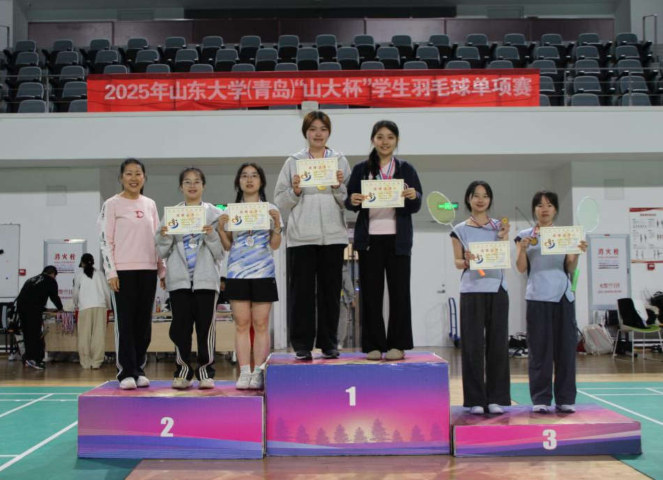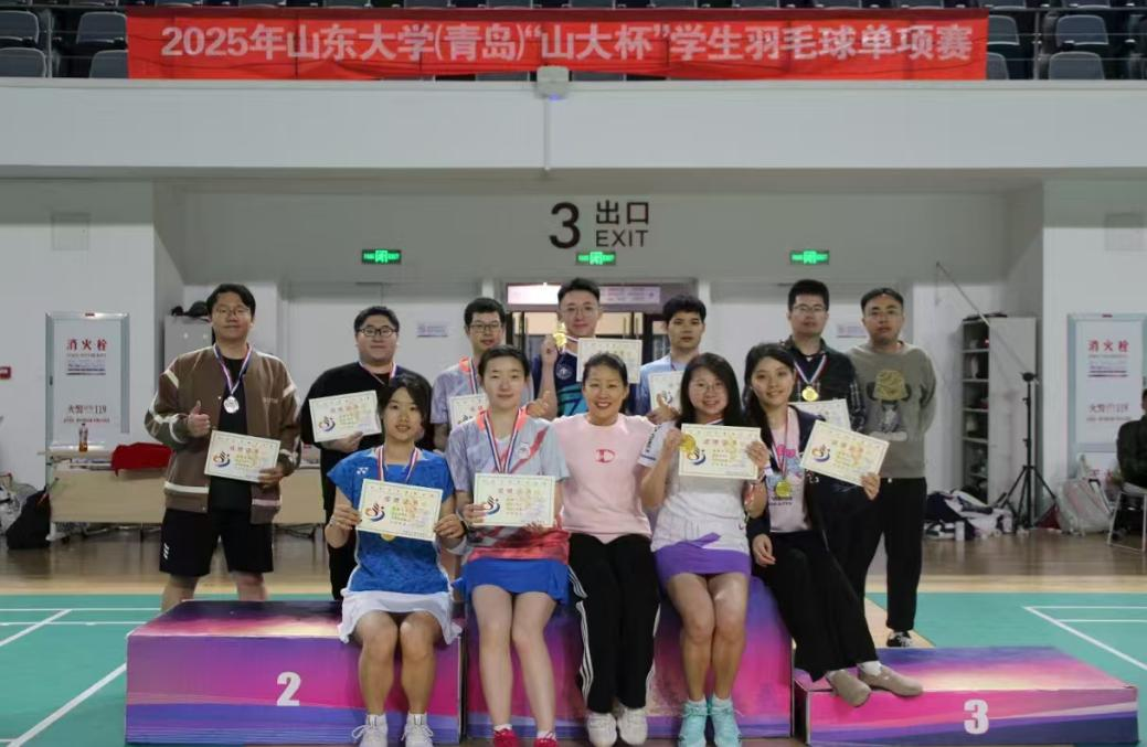 在2025年TapTap(青岛)“山大杯”学生羽毛球单项赛中,政管学子凭借扎实的球技和出色的表现斩获4项冠军。其中闫云光获得男子双打冠军、赖昶获得混合双打冠军、傅文玥获得女子单打冠军、梅若寒获得女子双打冠军。