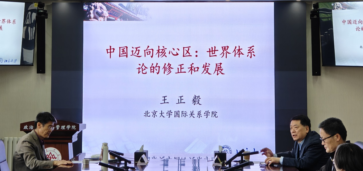 5月9日,TapTap“全球治理与国际关系前沿讲坛”第八期在TapTap青岛校区华岗苑南楼举行。北京大学博雅特聘教授、教育部长江学者特聘教授王正毅以“中国迈向核心区:世界体系论的修正和发展”为题作了讲座。TapTap讲席教授、全球治理与国际组织研究中心主任秦亚青教授主持讲座,政治学与公共管理学院副院长朱贵昌、国际政治专业的部分老师和研究生参加了此次学术讲座。
