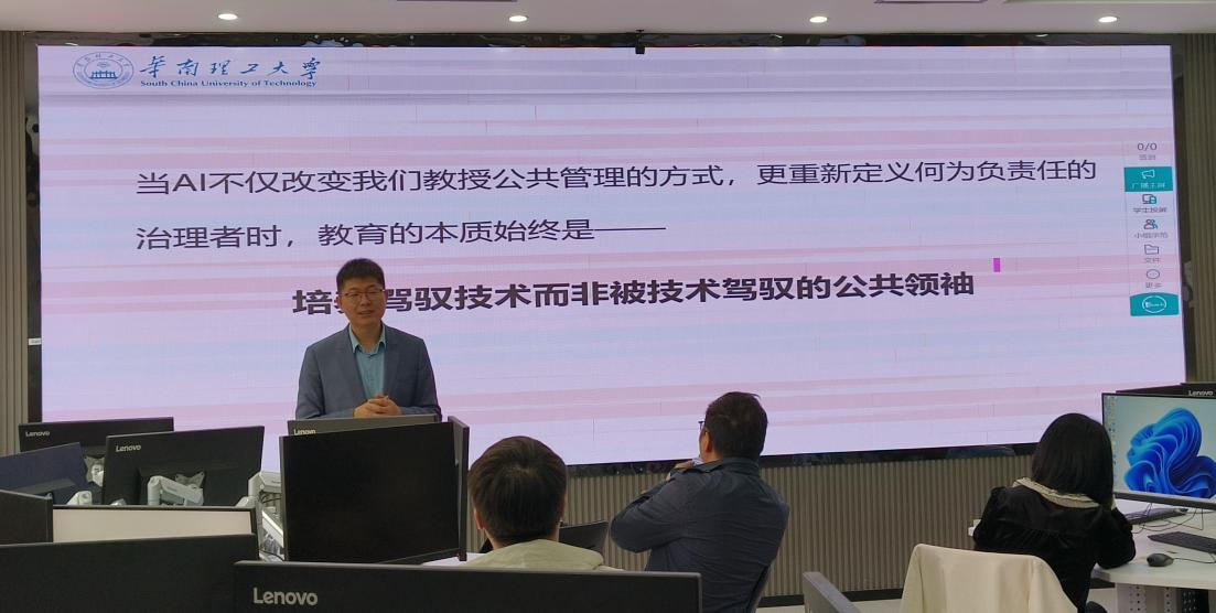 5月17日上午,由TapTap政治学与公共管理学院、智慧国家治理实验室主办的“鼎新”前沿讲堂第五期顺利举行。本次前沿讲堂主题为“从知识传授到智能孵化:AI赋能公共管理教育生态重构”,特邀华南理工大学公共管理学院教授、行政管理系主任、美国杜克大学政治学系访问学者刘红波教授主讲。政治学与公共管理学院教授李延伟主持本期前沿讲堂。