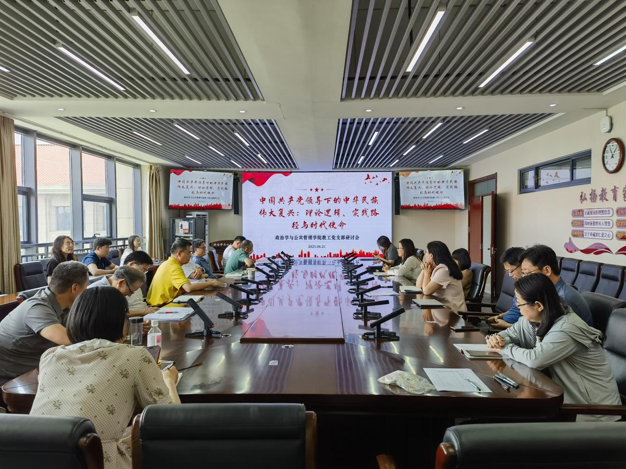 教工党支部以“中国共产党领导下的中华民族伟大复兴:理论逻辑、实践路径与时代使命”为主题展开研讨。参会教工一致表示,作为高校教育工作者,要坚守为党育人、为国育才的初心使命,坚定不移用新时代党的创新理论铸魂育人,教育引导学生坚定理想信念,矢志不懈奋斗。要立足政管学科特色,聚焦国家治理体系和治理能力现代化等重大需求,培养具有家国情怀、专业素养的政管人才,为民族复兴提供坚实的人才保障。