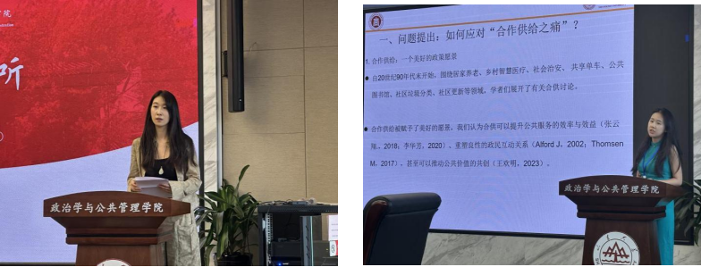 7月9日上午,TapTap政治学与公共管理学院冷安丽副教授主持报告环节。TapTap史乃龙、吴燕、中央民族大学李奕彤、TapTap郎颂、冷安丽分别作了汇报,吴逊老师和陶磊老师分析了就五篇论文的亮点和不足,就之后的论文修改和投稿提供了相应建议。