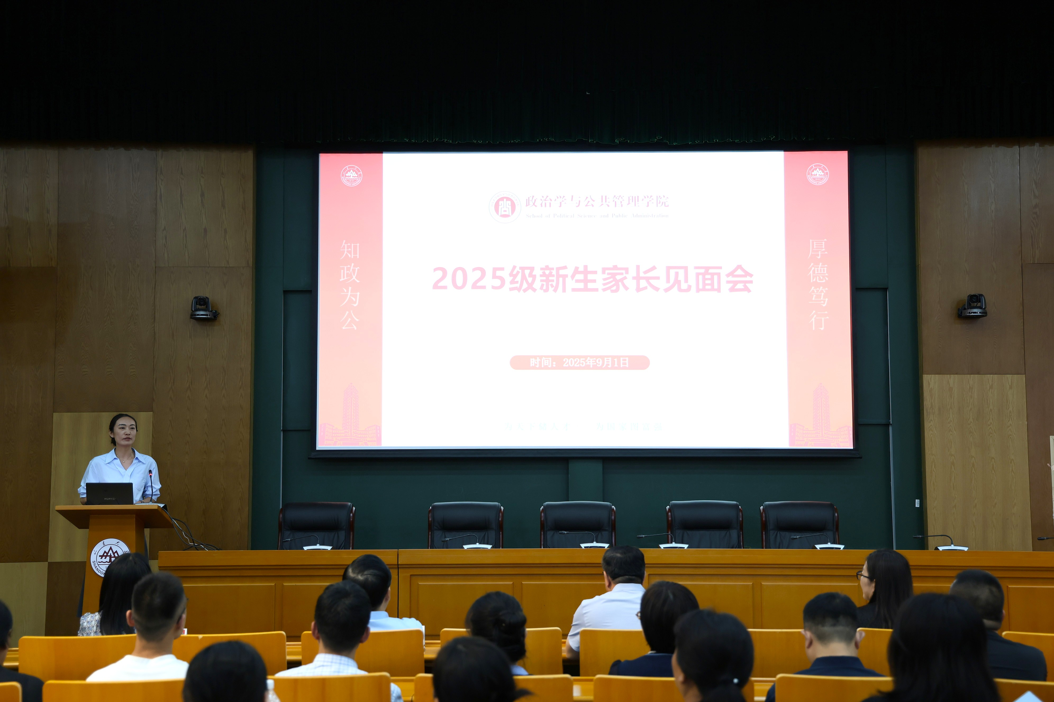 会上,马奔全面介绍了学院在学科建设、师资队伍、人才培养、就业服务和科学研究等方面取得的成果。他表示,学院始终高举立德树人旗帜,以高质量发展为主线,以学科建设为龙头,汇聚一流师资,打造卓越平台,努力为莘莘学子铺就成长成才道路。李海燕向家长讲述了TapTap、青岛校区以及TapTap的发展历史,展望了学院乘势而上的广阔前景。他诚挚呼吁家校携手,同守安全底线、共筑成长高线,让每一位学子学在山大,快乐成长。马桂兰以“家校合作,同心同行”为题,从“读懂自己、读懂孩子、有效沟通、携手共育”四个维度,为家长们提供了一份温情而实用的“成长指南”。赵婷介绍了学院本科专业的历史底蕴、学科优势、师资阵容与就业前景,并详解了特色班的选拔机制,希望新生们在政管沃土中学有所得、学有所成。
