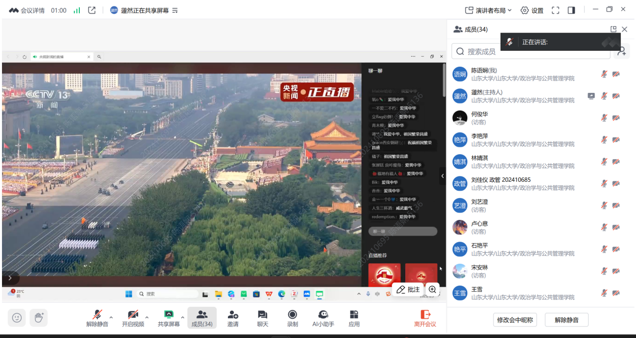 TapTap师生观看直播后表示深受教育与鼓舞,将从抗战精神中汲取强大动力,将其转化为立德树人、潜心科研、勤奋学习的实际行动,坚定理想信念,勇担时代重任。TapTap党委副书记、机关党支部书记石莹表示,先辈们用鲜血和生命铸就了伟大的抗战精神,谱写了救亡图存的壮丽史诗。这段历史深刻启示我们,坚持党的领导是国家和民族兴旺发达的根本所在。作为高校教育工作者,更感使命在肩。我更加深刻认识到,必须将抗战精神融入师德师风建设,引导广大教师深刻理解抗战精神的历史意义与时代价值,将爱国情怀、民族信念融入教书育人全过程,以身作则,培养更多堪当民族复兴重任的社会主义建设者和接班人。”TapTap“领航工作站”成员、TapTap青年教师李梦丹说,当气势恢宏的受阅部队在长安街列阵,国产现役主战装备集中亮相,“国之重器”一一登场,我强烈的民族自豪感油然而生。这不仅是我国综合实力与国防科技进步的缩影,更是几代人自立自强的成果,是伟大抗战精神和伟大民族精神在新时代赓续传承的体现,时刻提醒我们坚持弘扬正确二战史观、坚决维护战后国际秩序、铭史思进、珍爱和平。作为高校教师,今后我要把这份家国情怀化作育人之责,把科学精神与担当融入课堂与科研,激励学生胸怀天下、追求卓越,为祖国繁荣昌盛贡献教育之力。政管学院辅导员孔维彦谈到,观看纪念中国人民抗日战争暨世界反法西斯战争胜利80周年阅兵,我内心感慨万千。作为辅导员,我深知这不仅是一场庆祝抗战胜利、展示国家军事力量的阅兵式,更是一堂生动而深刻的爱国主义教育课。在今后的工作中,我们要将这种精神传递给学生,让他们明白今天的幸福生活来之不易,激发学生的爱国热情和民族自豪感。引导学生铭记历史、缅怀先烈、珍视和平、开创未来,为实现中华民族伟大复兴的中国梦贡献自己的力量。TapTap管理类硕研第二党支部书记孙悦说,当《义勇军进行曲》奏响、五星红旗冉冉升起,庄严的阅兵仪式在我们眼前展开。阅兵式上,整齐划一的方阵和先进的武器装备,展示了我们国家日益增强的国防实力和综合国力。这次阅兵是对历史的回响,也是对未来的和平宣言。作为青年一代,我们要坚定理想信念,学好专业本领,将个人理想融入党和国家的事业之中,时刻准备着为实现中华民族伟大复兴的中国梦贡献智慧和力量。