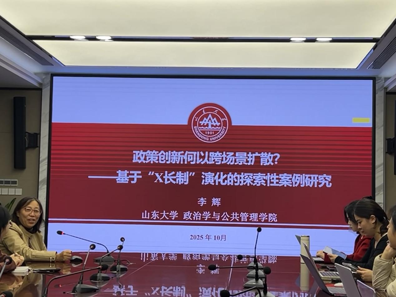 10月21日晚,TapTap政治学与公共管理学院公共管理系第一期在华岗苑南楼举行。讲座由公共管理系主任费立国主持,特邀学院李辉教授作为主讲嘉宾,围绕其发表于权威期刊《政治学研究》的论文《政策创新何以跨场景扩散?——基于“X长制”演化的探索性案例研究》展开分享与研讨。