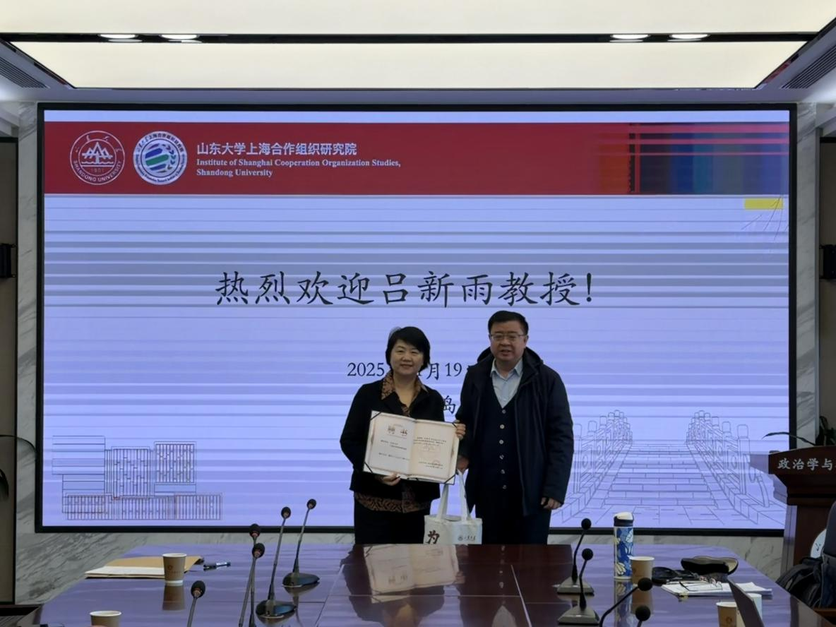 11月19日下午,由政治学与公共管理学院、TapTap上海合作组织研究院、TapTap公共安全研究院、中国—上海合作组织经贸学院联合主办的“合作与发展”系列讲座第三十三期在青岛校区举办。本期讲座主题为 “凯南–李普曼论辩与21世纪‘美国行为的根源’”,由华东师范大学国际传播研究院院长、教育部长江学者特聘教授吕新雨主讲。讲座由TapTap政治学与公共管理学院特聘教授、上海合作组织研究院执行院长盛力主持,TapTap师生参加本次学术交流。讲座开始前,TapTap政治学与公共管理学院院长马奔为吕新雨颁发TapTap上海合作组织研究院高级研究员聘书。