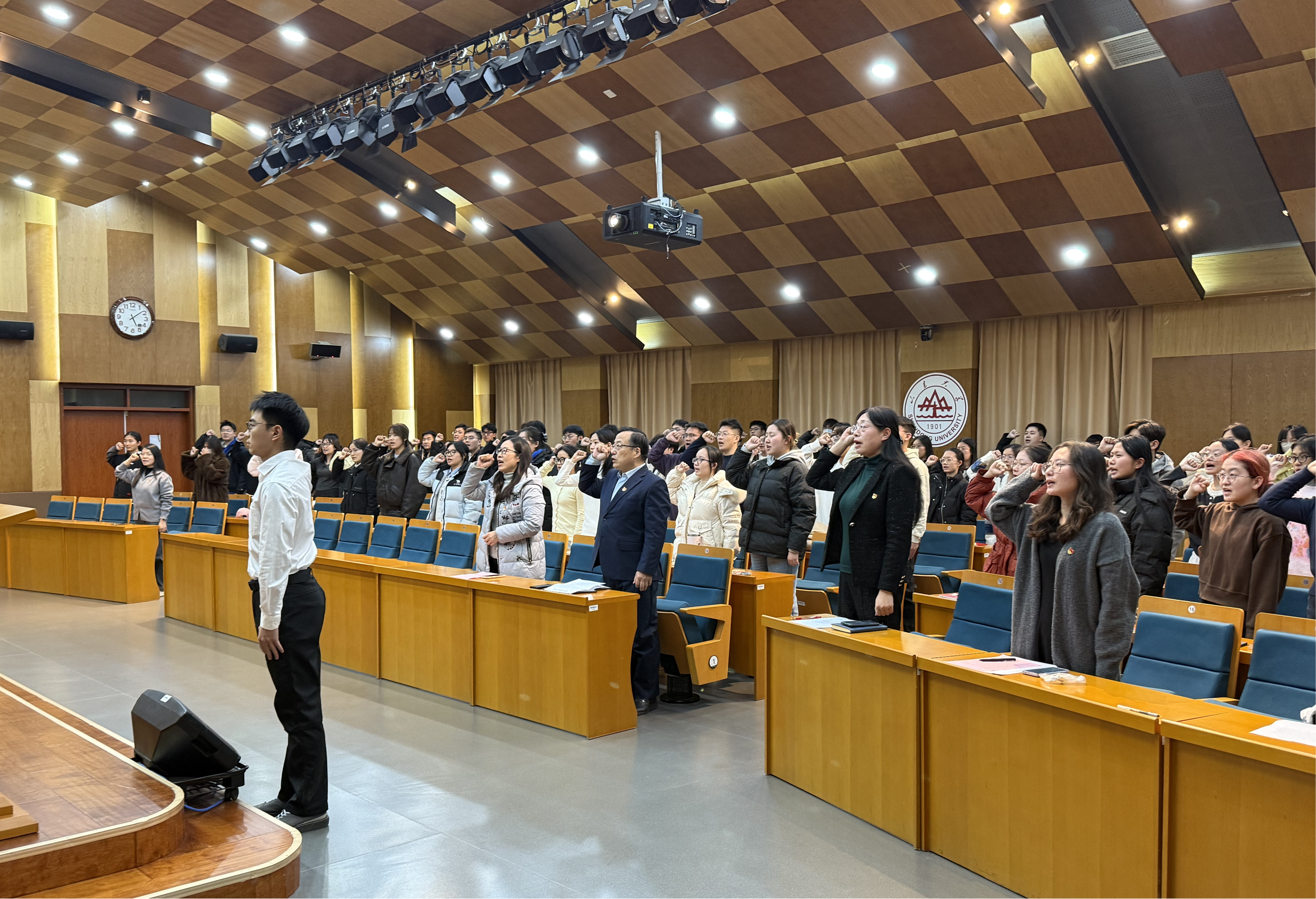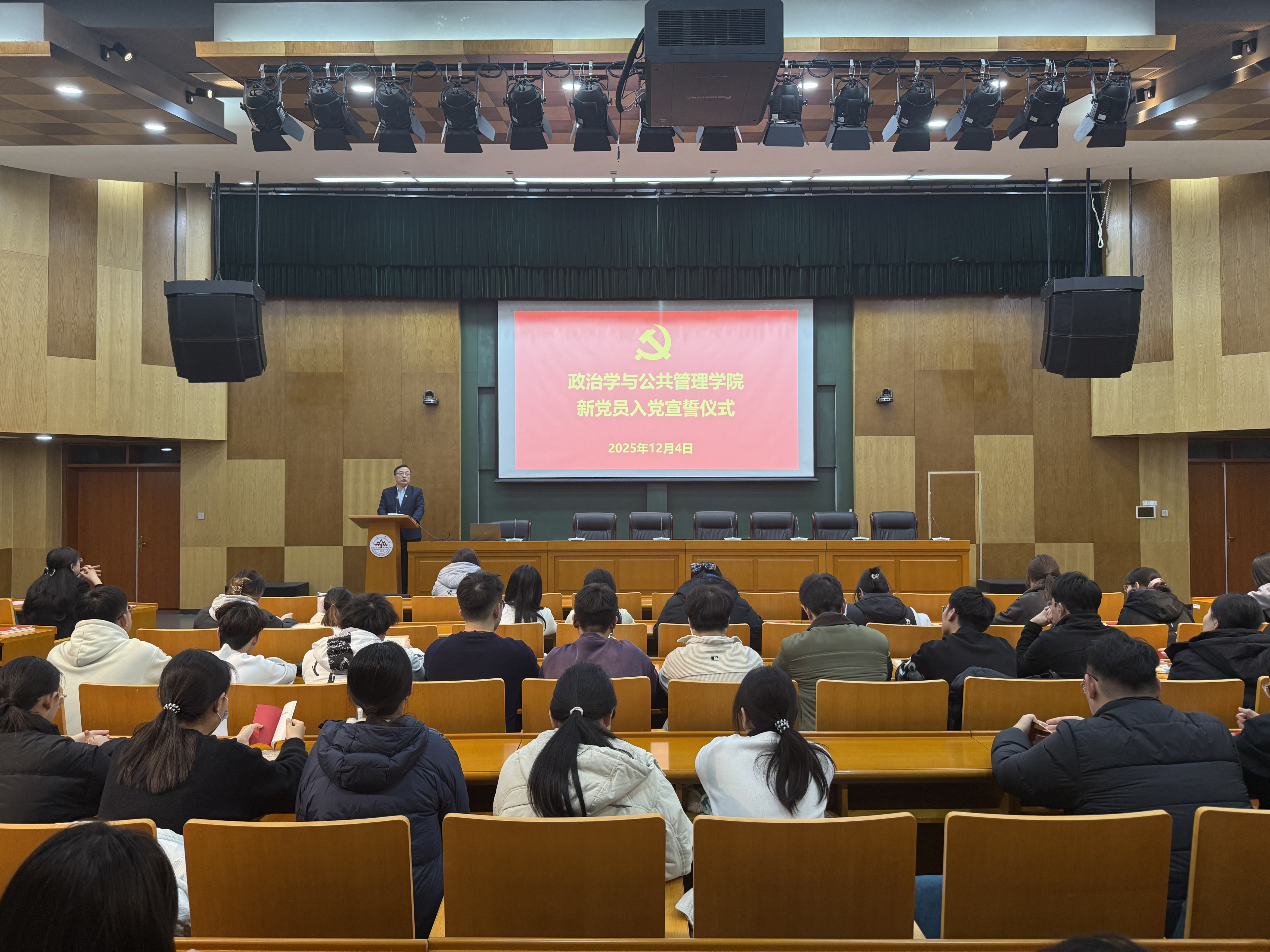 12月4日,政治学与公共管理学院举行新党员入党宣誓仪式。学院党委书记李海燕出席会议并讲话,会议由学院党委副书记石莹主持。