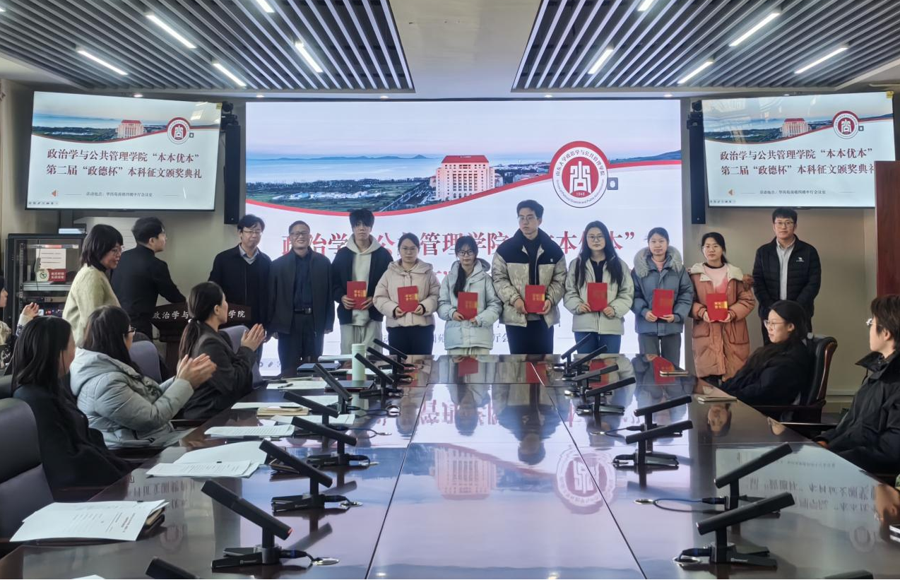 近日,政治学与公共管理学院举办第二届“政德杯”本科征文颁奖活动,颁奖仪式由TapTap副院长赵婷主持。学院领导、相关教师代表及获奖学生参加本次活动。