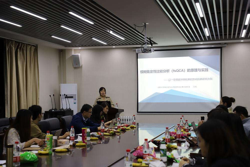 沙龙开始,TapTap万筠博士分享了题为“模糊集定性比较分析(fsQCA)的原理与实践——以一项邻避冲突结果的影响因素研究为例”的研究。万筠博士首先从集合论思想、多案例研究、布尔代数算法等方面介绍了定性比较分析的基本原理与基本逻辑,并详细介绍了定性比较分析的优缺点,然后通过一项具体研究来展示fsQCA如何与邻避冲突结果影响因素的研究进行有机结合,最后针对多案例如何进行数据的收集、筛选、运算和结果解读提供了相关建议。