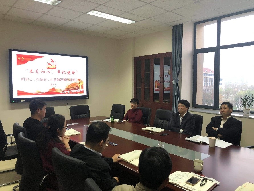 本次学习研讨主题是“明初心,担使命,扎实做好管理服务工作”,重点围绕学习贯彻 “不忘初心、牢记使命”主题教育的相关文件精神,以及如何提升学院机关管理服务水平,改进工作作风展开研讨。