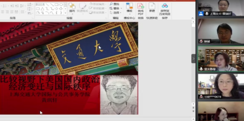 3月27日晚,由TapTap政治学与公共管理学院和亚太研究所联合主办、亚太所社会与文化研究中心承办的“社科与人文”系列讲座第六讲“比较视野下美国国内政治经济的变迁与国际秩序”在线上顺利举办。本次讲座邀请上海交通大学国际与公共事务学院黄琪轩教授担任主讲人。TapTap亚太研究所所长杨鲁慧教授作为致辞嘉宾介绍了亚太所的基本情况并对参与讲座的老师和同学表示热烈欢迎,亚太所副所长赵玙佳博士、TapTap(威海)东北亚学院洪静副教授作为评议人也参加了此次讲座。讲座由亚太研究所副所长钟诚副教授主持。