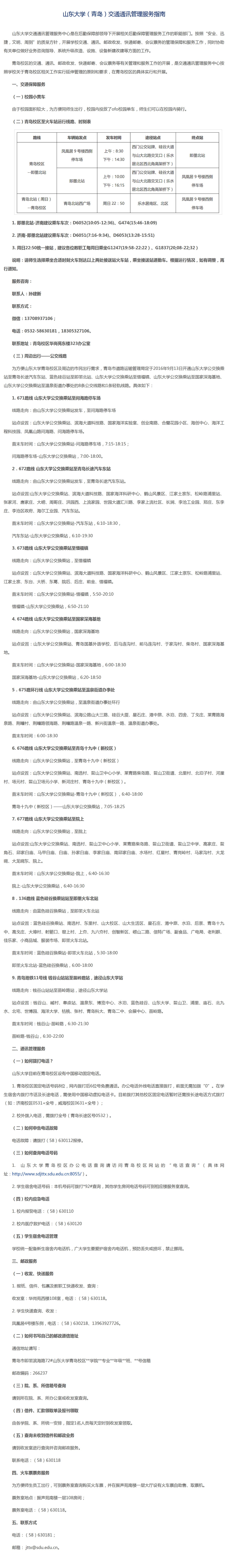 5.交通住宿:请参阅青岛校区交通通讯管理服务指南(点击下载)前来青岛校区。请参阅青岛校区地图(点击下载)前来华岗苑南楼。青岛校区基础设施尚不健全,住宿选择少、条件有限:校外距离较近的住宿地点是四海宾馆(0532-86553388),其他另有如家(通往校区的路口因修路封闭)、港中旅、南山美爵等酒店在校区附近可供住宿。如决定住距离校区较远但条件较好的酒店,请预先做好交通预案。校区常用租车服务公司为德通公司小车服务(0532-58630126)。