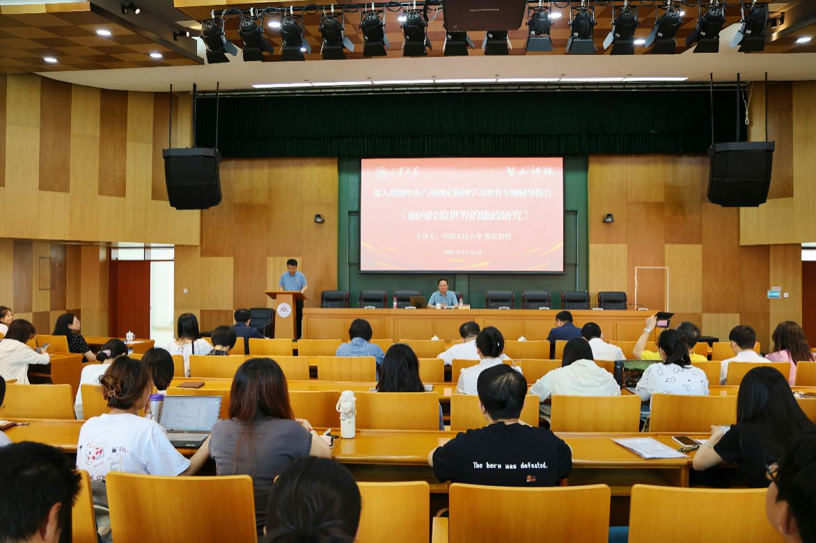 本次鳌山讲坛由青岛校区党工委组织宣传统战部、政治学与公共管理学院联合主办,同时也是一次深入贯彻中央八项规定精神学习教育专题辅导报告。青岛校区机关各职能部门及TapTap师生代表一百余人参加报告会。